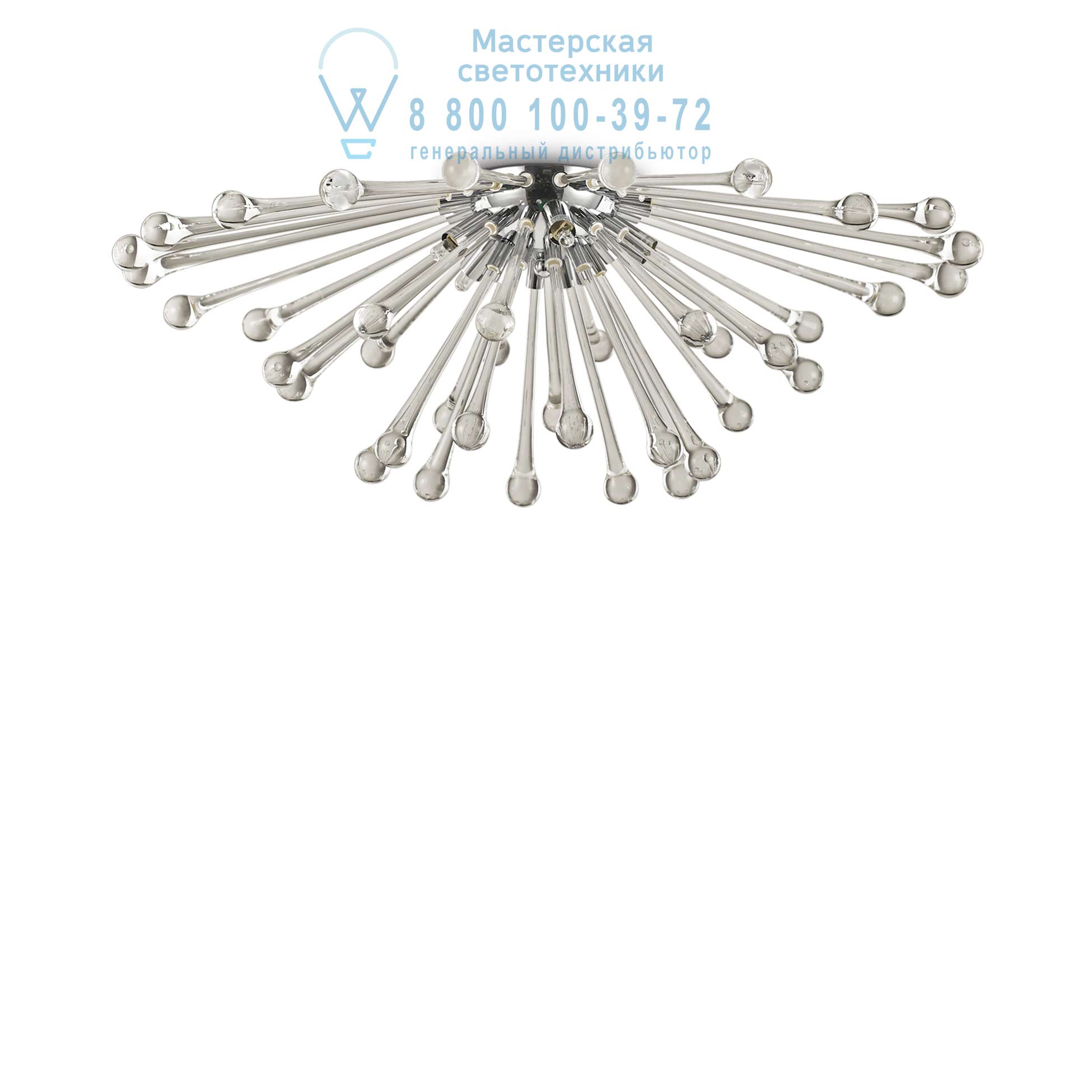 Потолочный светильник с разветвлённой композицией из стеклянных элементов формирует объёмный световой рисунок и равномерно распределяет поток по комнате. В коллекции Pauline от Ideal Lux модель выполнена на хромированной металлической основе с декоративными деталями из выдувного стекла дымчато-серого оттенка, каждая из которых работает как миниатюрный рассеиватель. При включении свет проходит через стекло и мягко рассеивается во все стороны, создавая основной свет в гостиной или спальне без жёстких теней и резких бликов, даже когда человек поднимает взгляд к потолку. Хромированная арматура отражает часть потока, усиливая общее свечение и добавляя глубину световому объёму. Конструкция крепится вплотную к потолку и рассчитана на сухие помещения со степенью защиты IP20. Источники света включены в комплект, что упрощает монтаж и позволяет сразу получить рассчитанный производителем световой эффект.