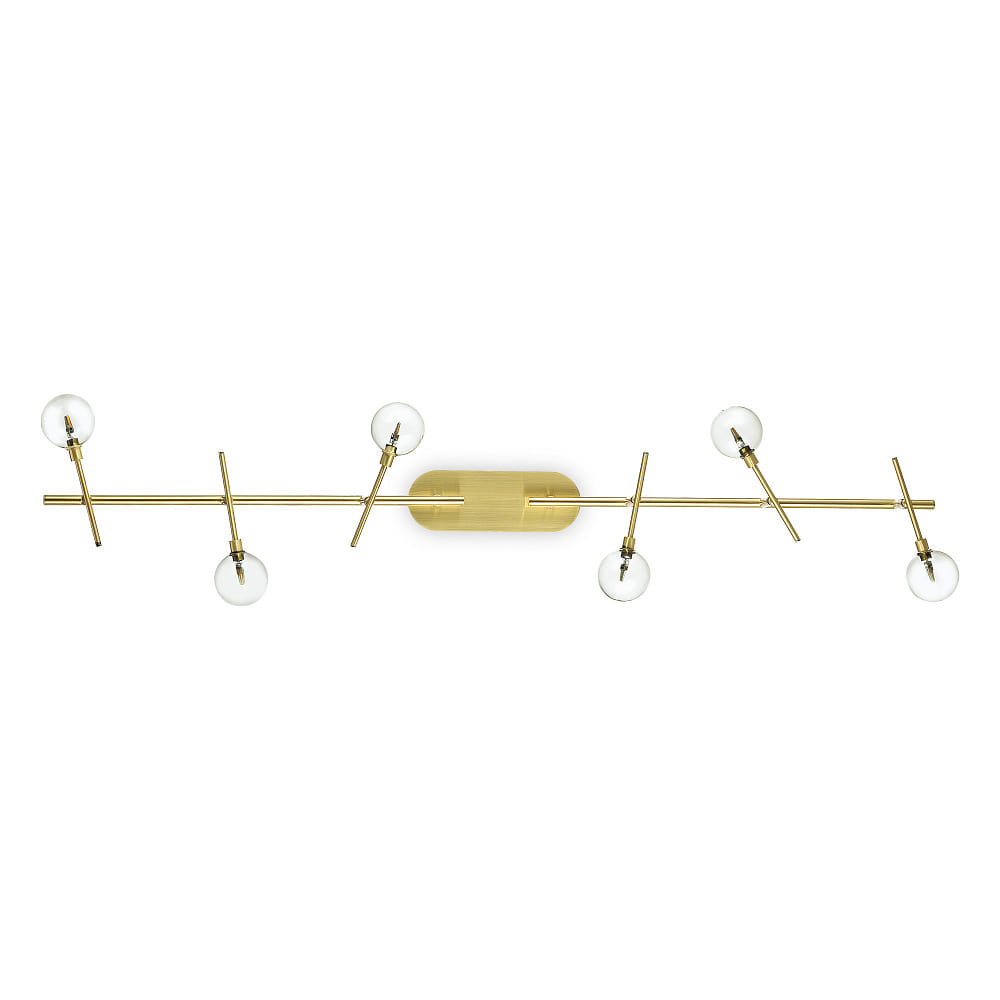 настенно-потолочный светильник с шестью сферическими плафонами на латунной штанге