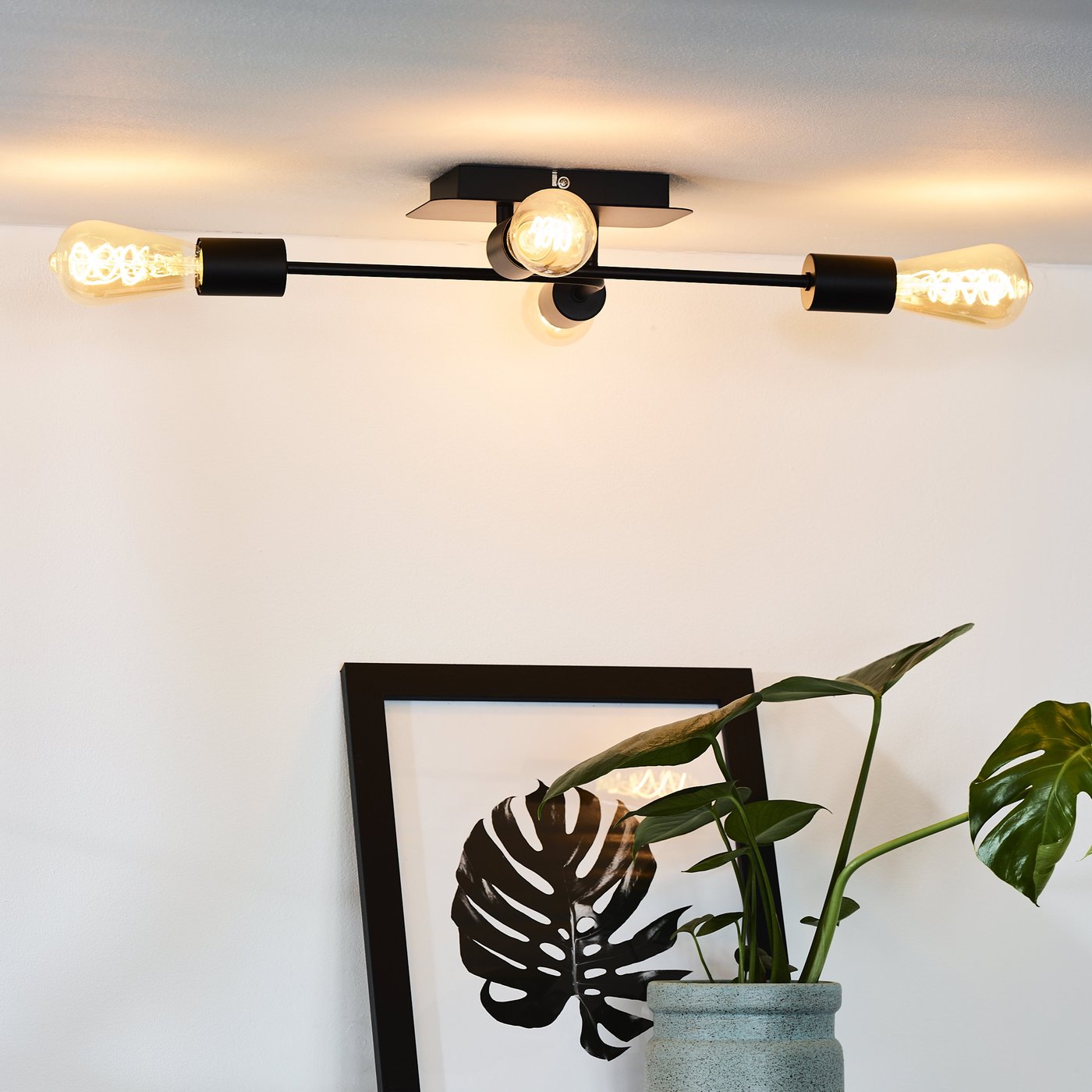 Настенный светильник вытянутой формы предназначен для установки на потолок и выполнен из металла с четырьмя патронами под лампы E27, каждая мощностью до 40 Вт, лампы в комплект не входят. Конструкция прямоугольная с центральным основанием и двумя выступающими в стороны планками, на которых расположены патроны, обеспечивая рассеянное освещение вокруг корпуса. Размеры светильника 51×39×9 см, высота потолочной чаши 2,5 см. Светильник поддерживает диммирование через стандартный выключатель, рассчитан на подключение к сети 230 В, степень защиты IP20, стиль винтажный, форма корпуса прямоугольная, подходит для освещения жилых помещений с декоративной функцией.