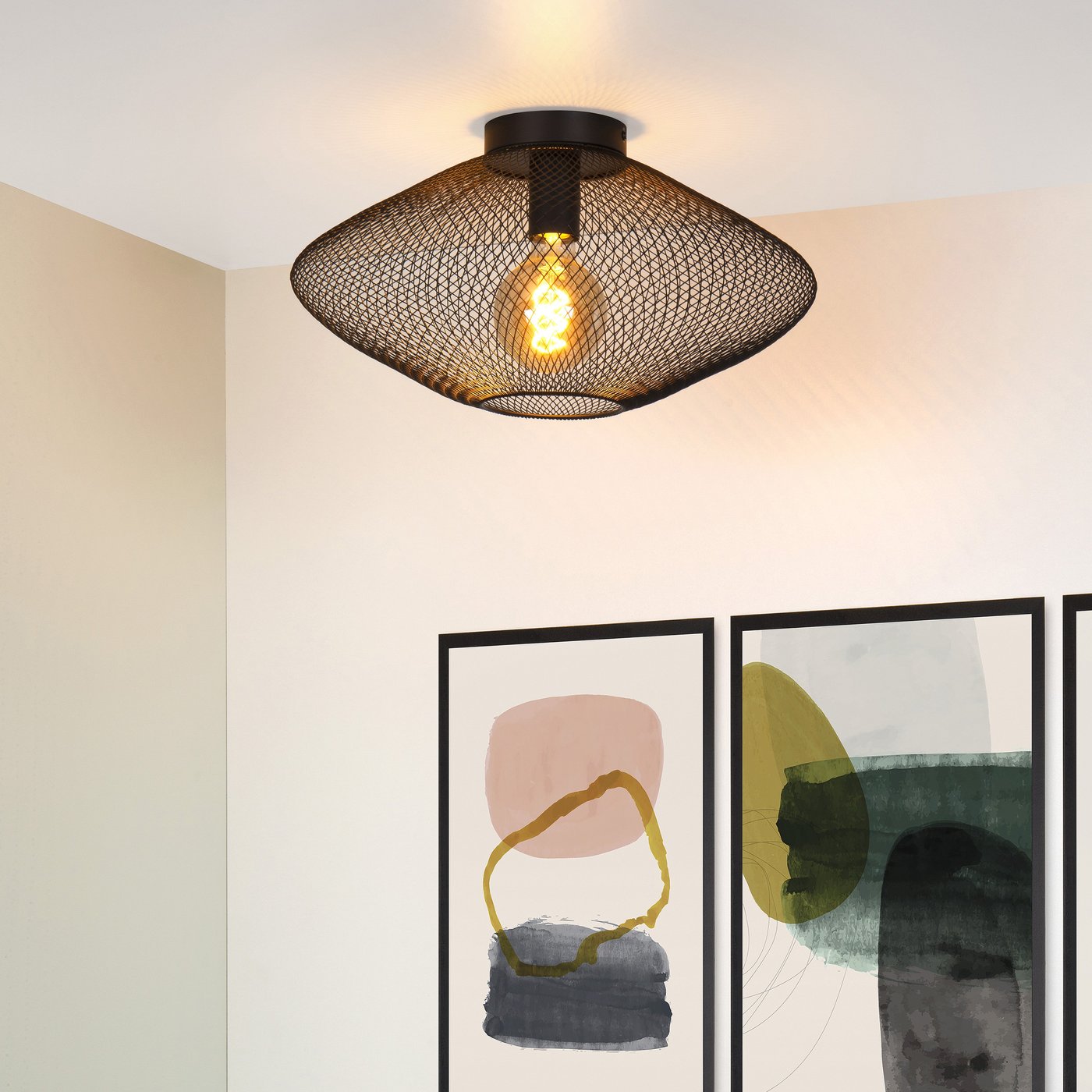 потолочный светильник с тёмным сетчатым плафоном округлой формы