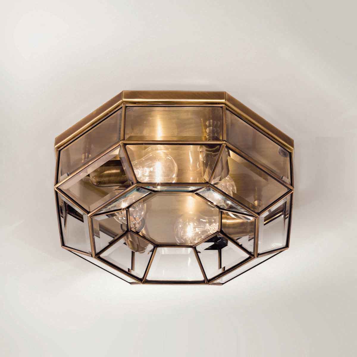 потолочный светильник из латуни с восьмигранным корпусом и зеркальным основанием