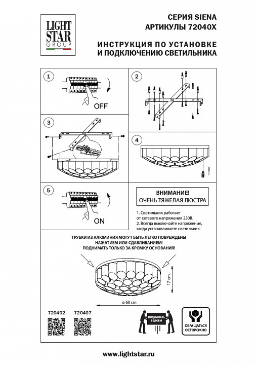 720407 Lightstar Siena потолочный светильник, 40Вт, черный