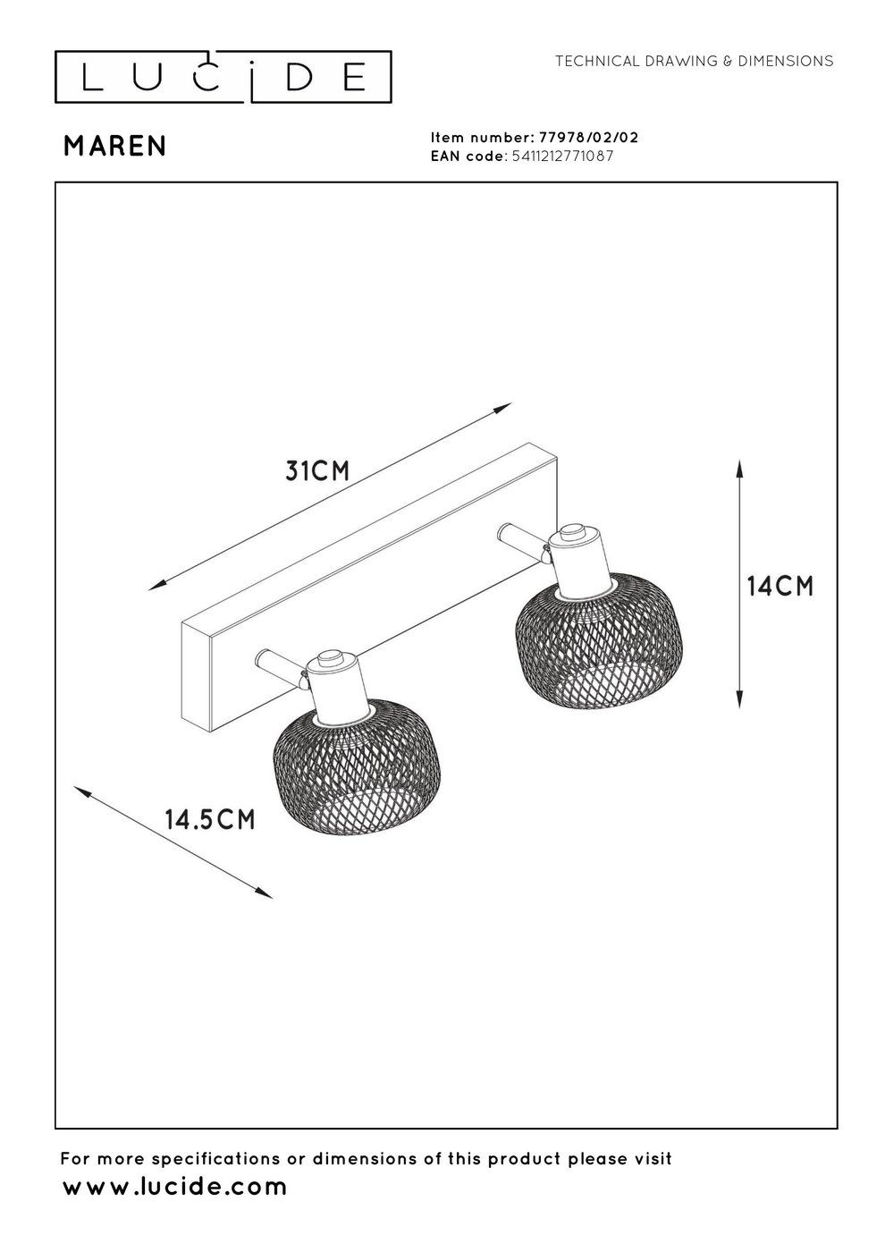 77978/02/02 Lucide Maren потолочный светильник с двумя шарообразными плафонами бронзового оттенка
