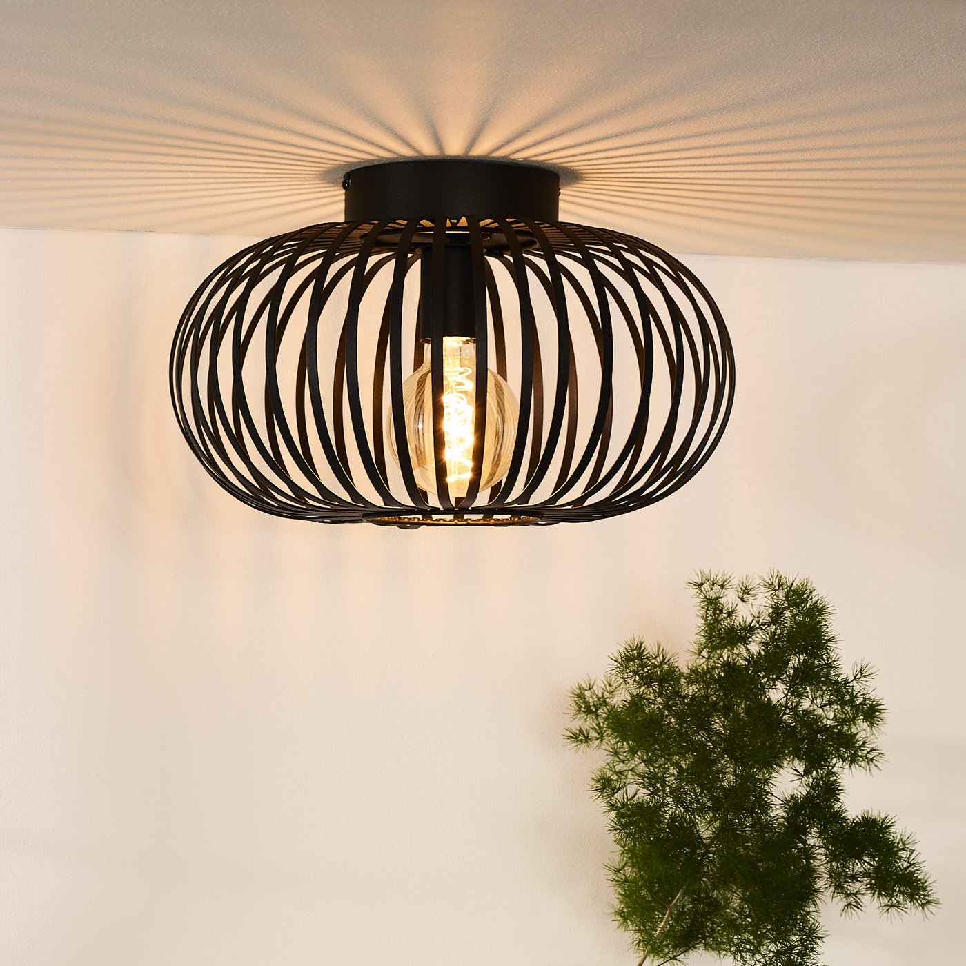 потолочный светильник с круглым плафоном из металлических полос чёрного цвета