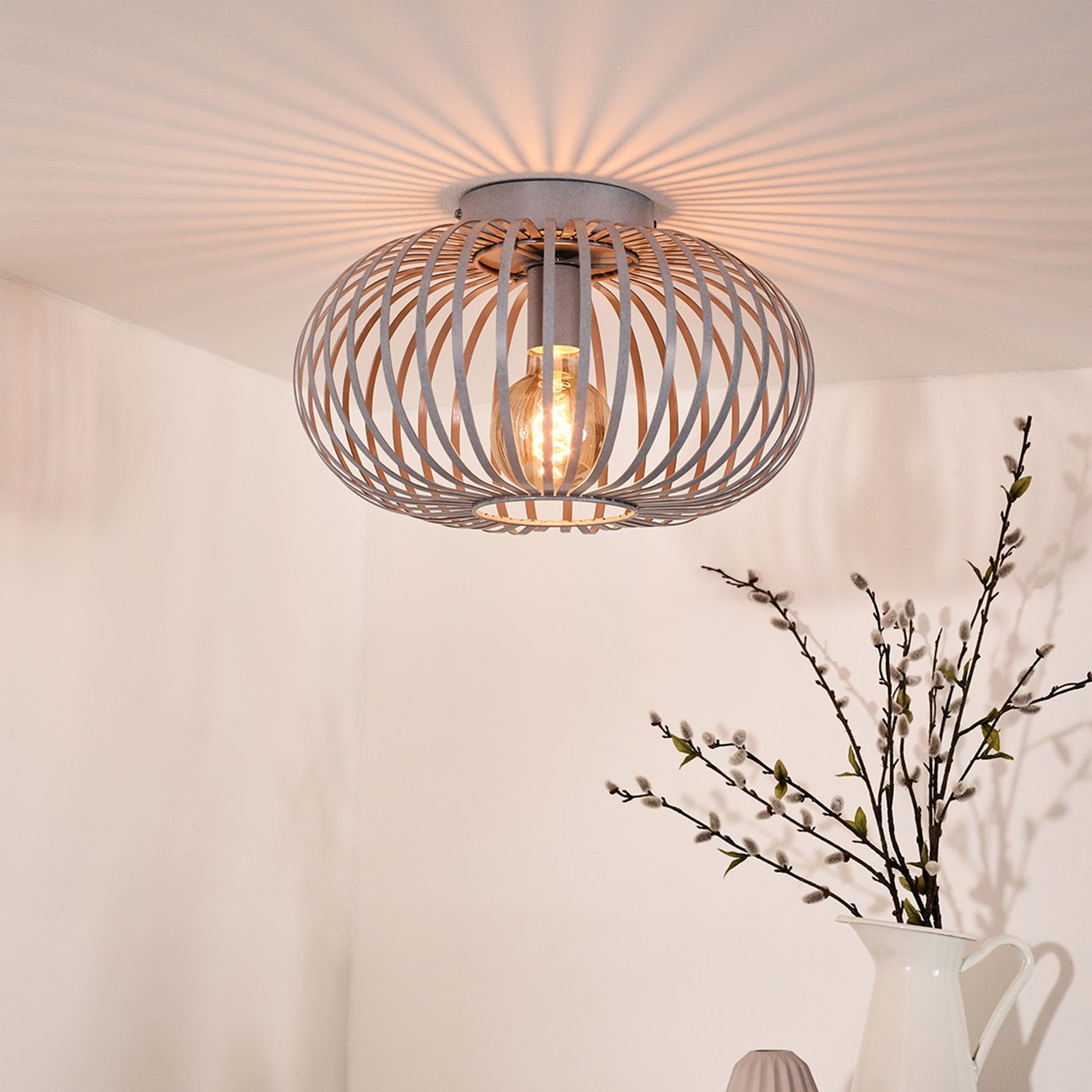 🆔 Потолочный светильник с металлическим плафоном серого цвета и открытым источником света серый MANUELA by Lucide