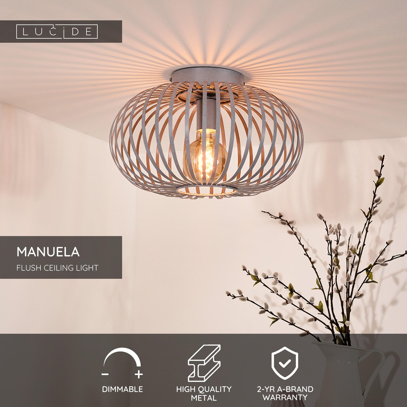 Лампочка, запертая в металлической рамке. Потолочный светильник Manuela справится с этой задачей. Новинка в ассортименте Lucide, но уже сейчас пользуется огромным успехом. Благодаря лампам видимого света Manuela разумно отвечает современным тенденциям в интерьере. В этом потолочном светильнике есть всё, чтобы сделать ваш дом уютнее. Поместите этот потолочный светильник над обеденным, кухонным или журнальным столиком и сразу же насладитесь прекрасной атмосферой. Manuela легко подключается к диммеру и выглядит очень эффектно.