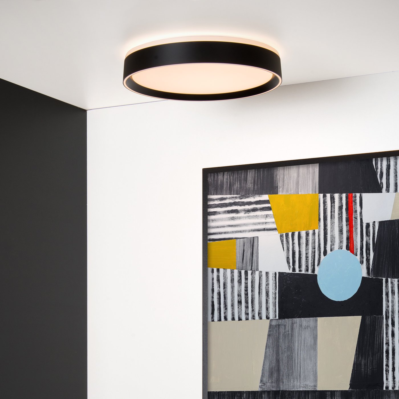 Тьма в диалоге со светом, в прямом и переносном смысле. Этот потолочный светильник Nuria искусно играет на этом контрасте. Словно солнце, окружённое тенью. Пластиковый светильник подвешен на металлической монтажной пластине. Встроенная светодиодная лампа имеет регулировку яркости. С помощью настенного выключателя вы можете выбрать один из трёх уровней интенсивности света, а значит, и три атмосферных режима. Nuria диаметром 40 сантиметров станет прекрасным современным акцентом для любого интерьера.