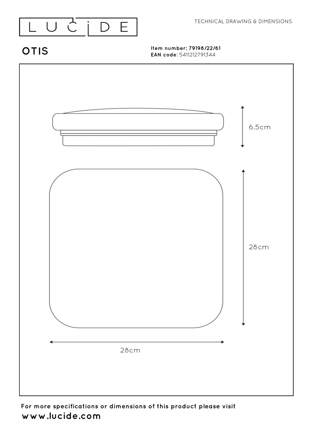 28см x 28см x 6.5см