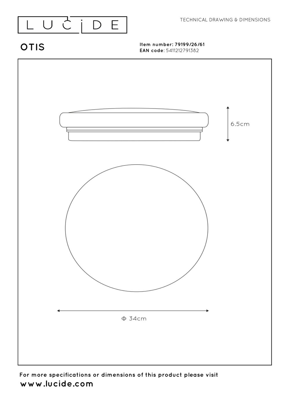 79199/26/61 Lucide Otis потолочный светильник круглой формы с белым плафоном