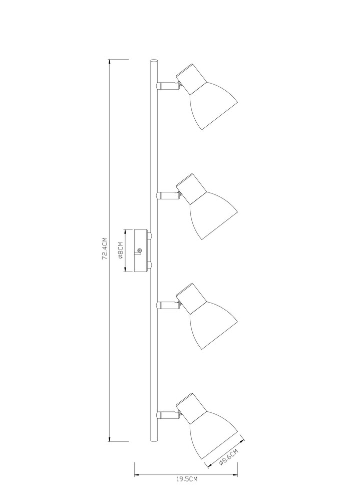 Потолочно-настенный спот Arte Lamp Falena выполнен в современном стиле и предназначен для акцентного освещения жилых интерьеров. Конструкция представляет собой изогнутую металлическую штангу с четырьмя поворотными плафонами, что позволяет гибко распределять свет в пространстве. Арматура с матовой поверхностью выполнена в чёрном цвете и дополнена декоративными элементами под бронзу, а плафоны из матового белого стекла имеют форму расходящегося колокола и обеспечивают мягкое рассеивание света. Светильник рассчитан на установку четырёх ламп с цоколем E14 мощностью до 40 Вт каждая, лампы в комплект не входят, допускается использование ламп накаливания или светодиодных источников света. Поворотная конструкция плафонов позволяет направлять свет в нужные зоны, формируя как общее, так и локальное освещение. Модель подходит для монтажа на потолок или стену и органично вписывается в современные интерьеры гостиной, кабинета или прихожей.