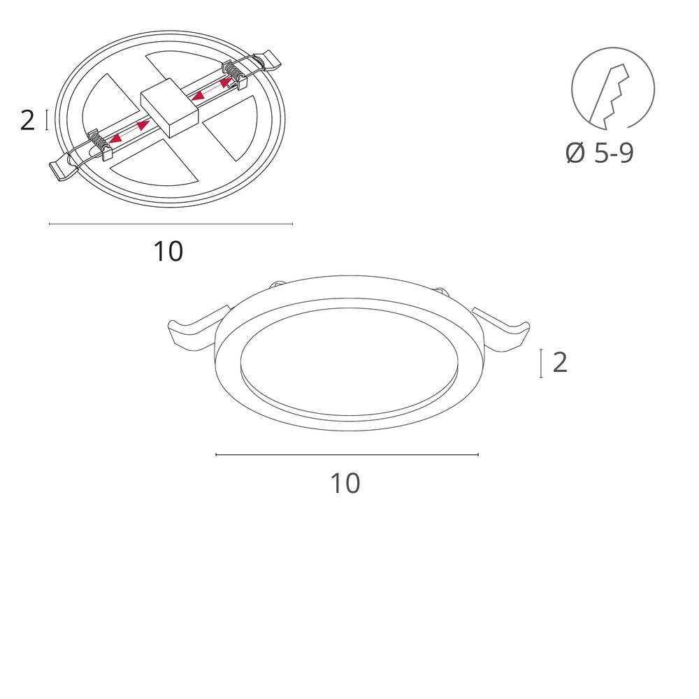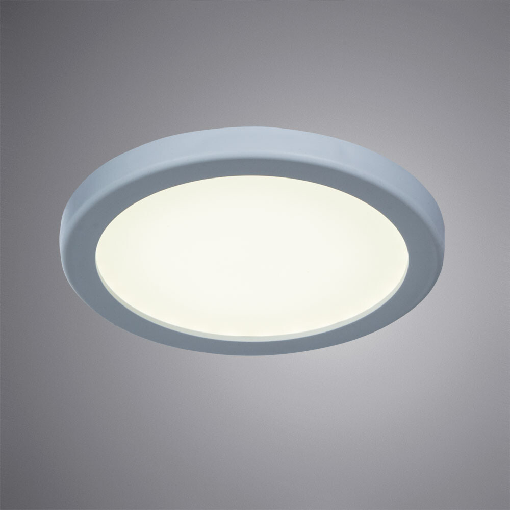 Встраиваемый потолочный светильник Arte Lamp Mesura A7977PL-1WH выполнен в компактном круглом корпусе с плоским матовым рассеивателем белого цвета и рассчитан на применение в современных интерьерах в стиле техно. Конструкция сочетает металлическую арматуру и акриловый плафон, формируя мягкое равномерное свечение без выраженных теней. Модель оснащена встроенным светодиодным источником мощностью 6 Вт со световым потоком 300 лм и тёплой цветовой температурой 3000 К. Свет направлен вниз, что делает светильник удобным для локального освещения жилых помещений, включая гостиную, кабинет и коридор. Диаметр корпуса составляет 100 мм при высоте 20 мм, размер врезного отверстия — 50–90 мм, установка выполняется на прижимных скобах. Светильник рассчитан на питание 220 В, имеет степень защиты IP20, класс энергопотребления A и ресурс светодиода до 20 000 часов, при этом возможность диммирования не предусмотрена.