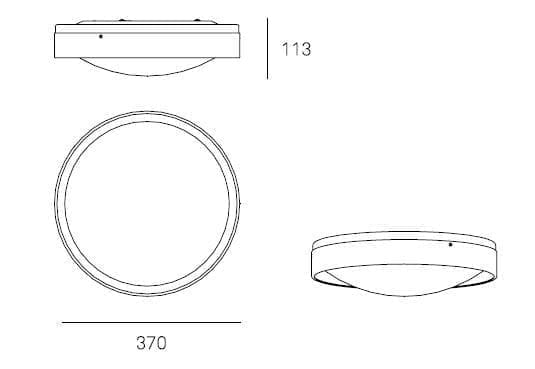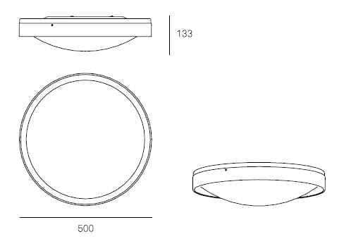 Потолочный светильник двух размеров, 370 и 500 мм, с основанием потолочного светильника из полупрозрачного полиметилметакрилата (ПММА) с матовым покрытием с обеих сторон, термоформованным до толщины 3 мм (что позволяет свету рассеиваться к потолку).