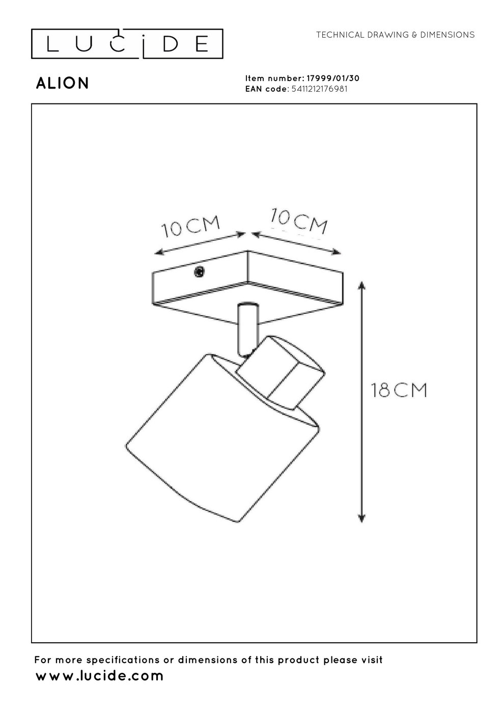 Ищете потолочный точечный светильник, который может предложить немного больше? Тогда Alion — идеальный выбор. Высота этого точечного светильника составляет 18 см, а потолочная пластина — квадратная, металлическая, размером 10 на 10 см. Абажур выполнен из дымчатого стекла в скруглённом квадрате, расположенном вокруг лампочки. Это придаёт классическому дизайну Alion современный штрих. Потолочный светильник поворачивается и наклоняется, и его легко подключить к диммеру. Идеальное освещение там и тогда, когда оно вам нужно? Alion готов к работе.