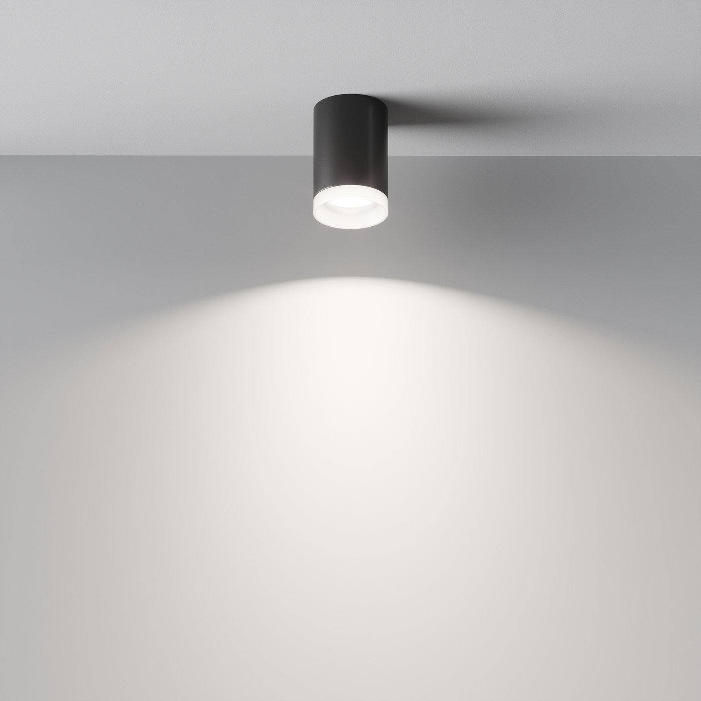 Накладной потолочный светильник выполнен в виде компактного цилиндра с утопленным световым кольцом, поэтому источник света скрыт в корпусе и не попадает напрямую в поле зрения. В коллекции Pauline бренда Maytoni эта модель рассчитана на аккуратную работу с направленным вниз светом, когда важно осветить зону под светильником без слепящего эффекта. В реальном использовании светильник ставят в коридорах, кухнях или рабочих зонах: свет мягко собирается на полу или столешнице, а при движении человека остаётся комфортным за счёт экранирования источника. Акриловый рассеиватель формирует ровное свечение и сглаживает контуры светового пятна, поэтому яркость воспринимается спокойнее, чем у открытых спотов. Цоколь GU10 позволяет подобрать лампу под нужную задачу — от более узкого пучка для локального освещения до широкой оптики для равномерного заполнения зоны. Мощность до 10 Вт объясняет, почему модель подходит именно для локального и вспомогательного света, а не для основного освещения, сохраняя баланс между компактными размерами и функциональностью.
