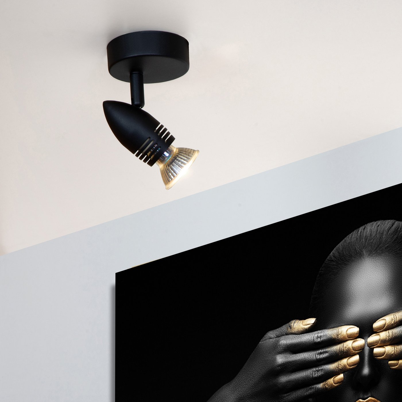 потолочный светильник с одним направленным плафоном на короткой штанге