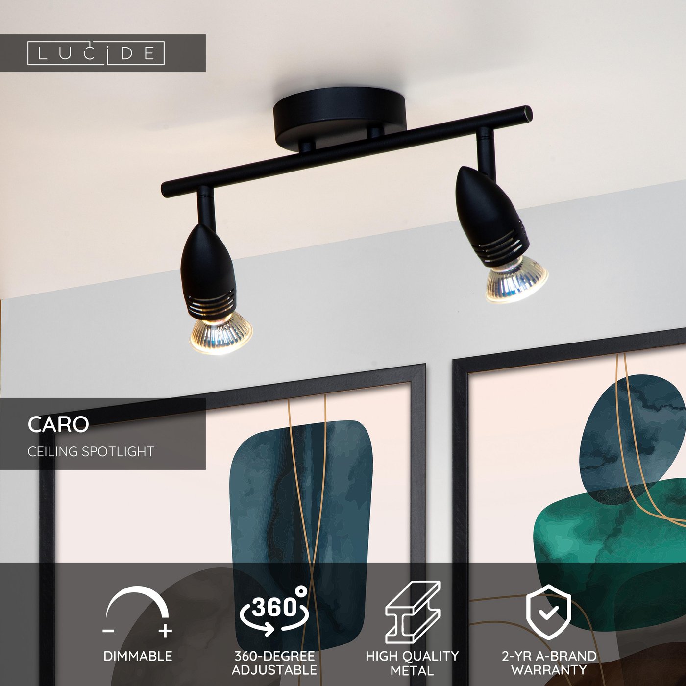 🆔 Потолочный светильник с двумя регулируемыми источниками света черный CARO by Lucide