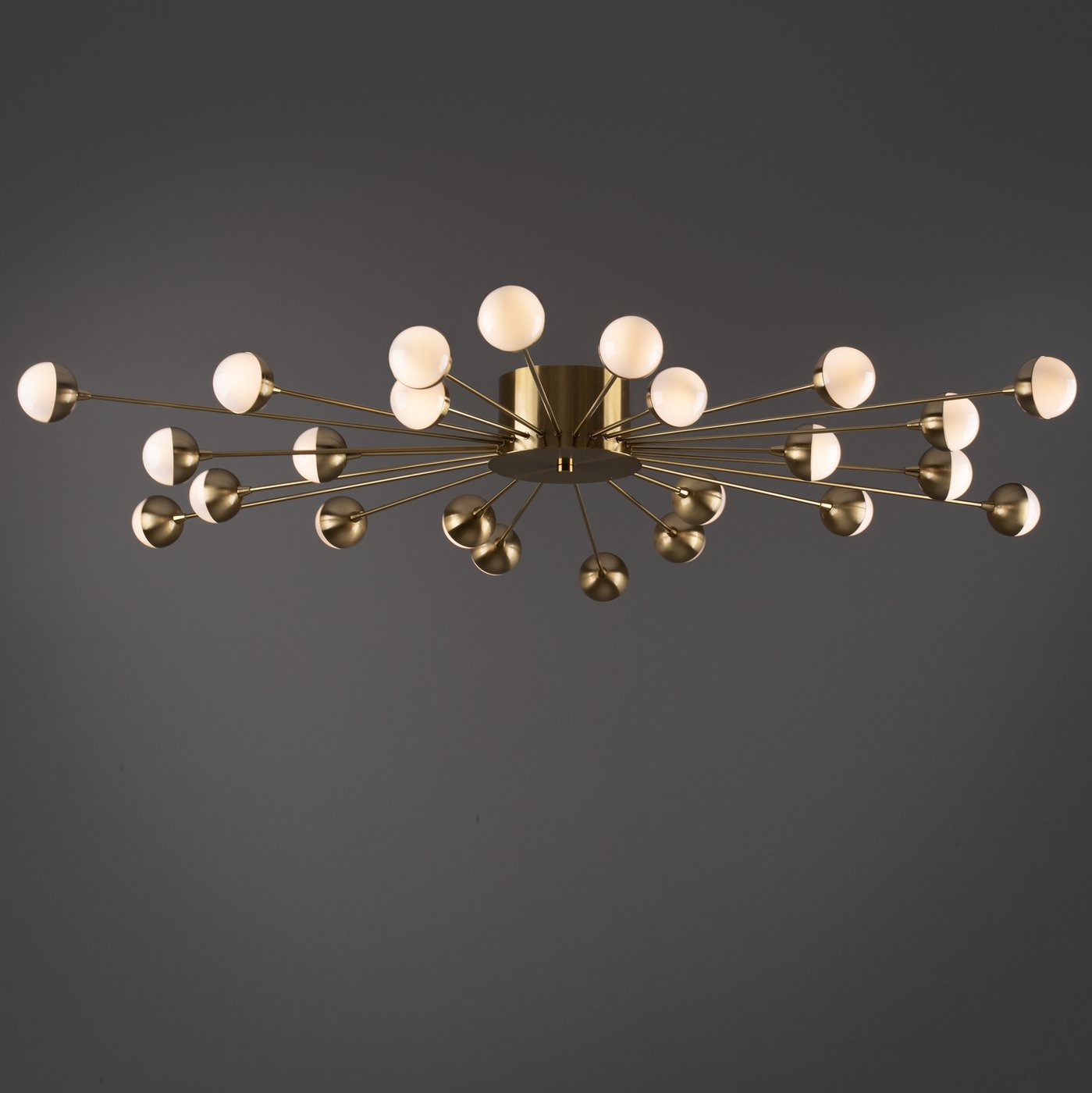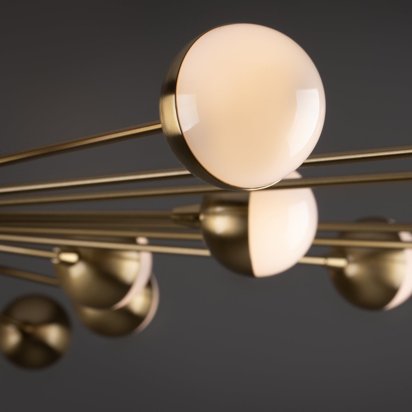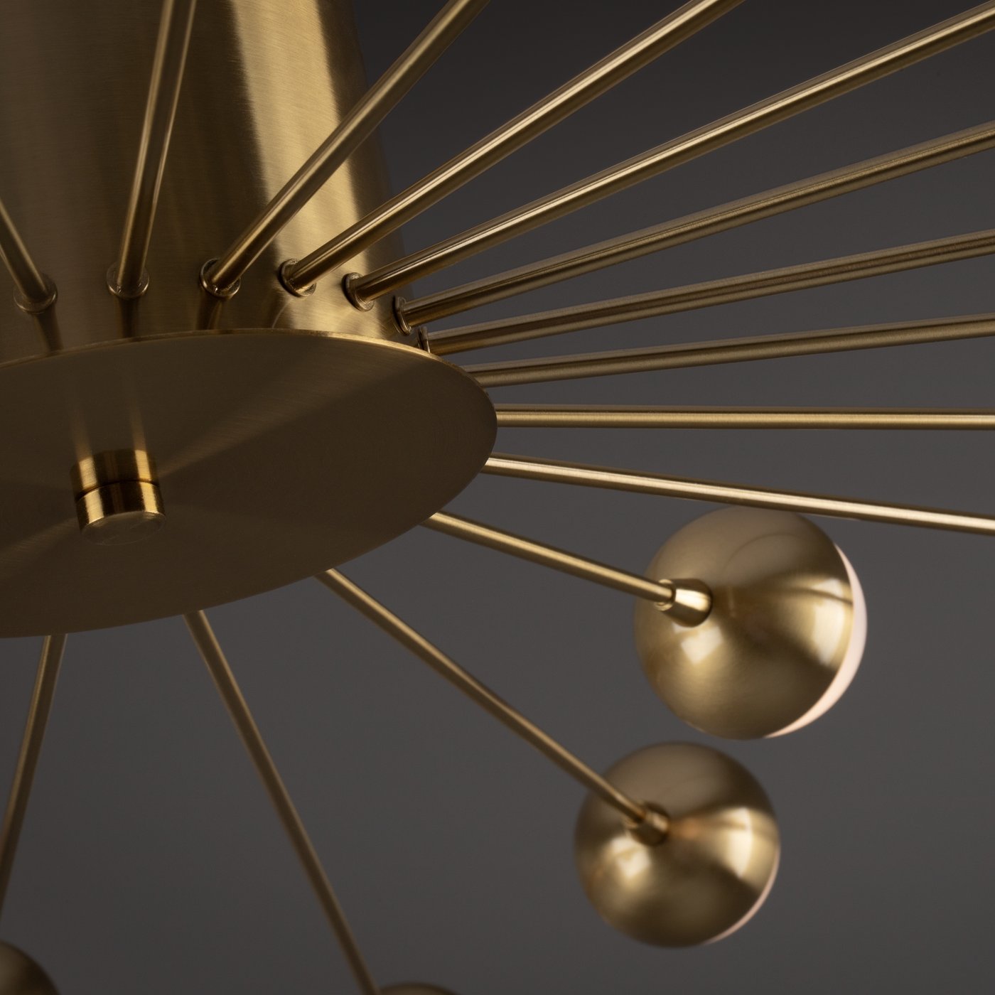 потолочный светильник с латунными стержнями и шарообразными источниками света