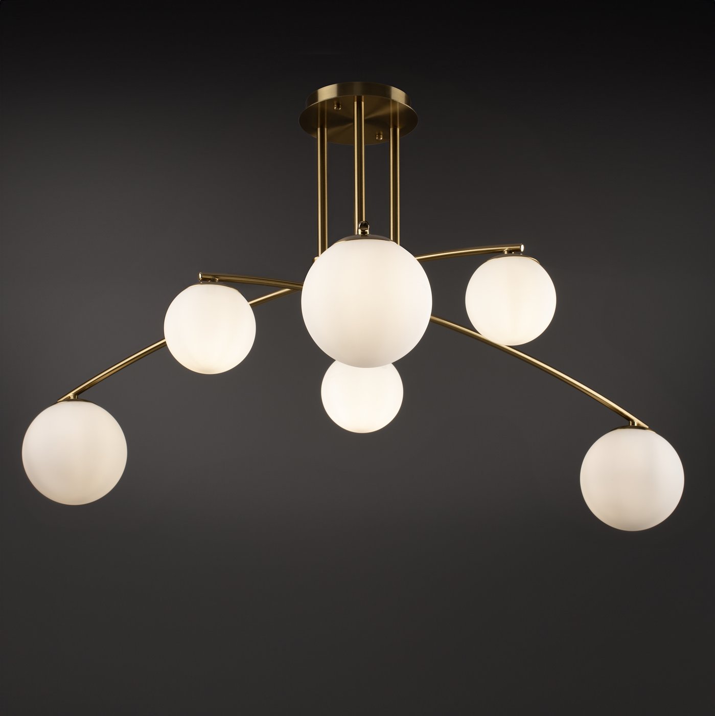 потолочный светильник с шестью сферическими плафонами на металлическом основании