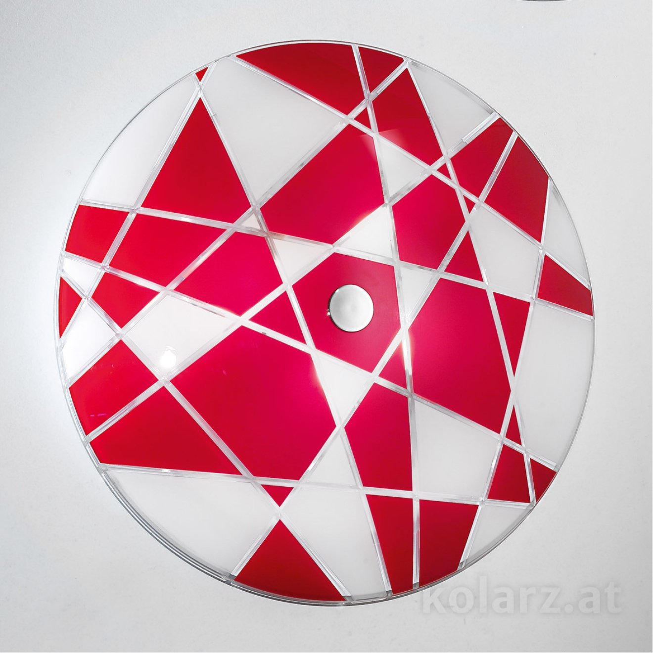 🆔 Потолочный светильник круглый с геометрическим орнаментом красно-белый хром Centro mikado by Kolarz