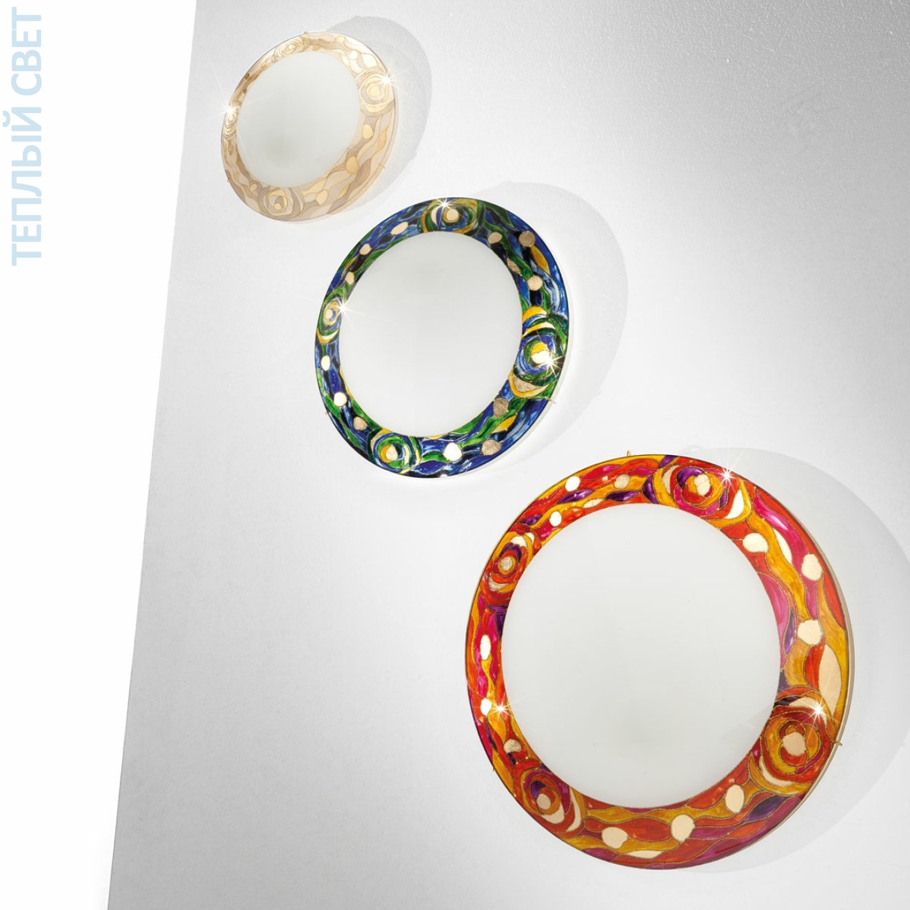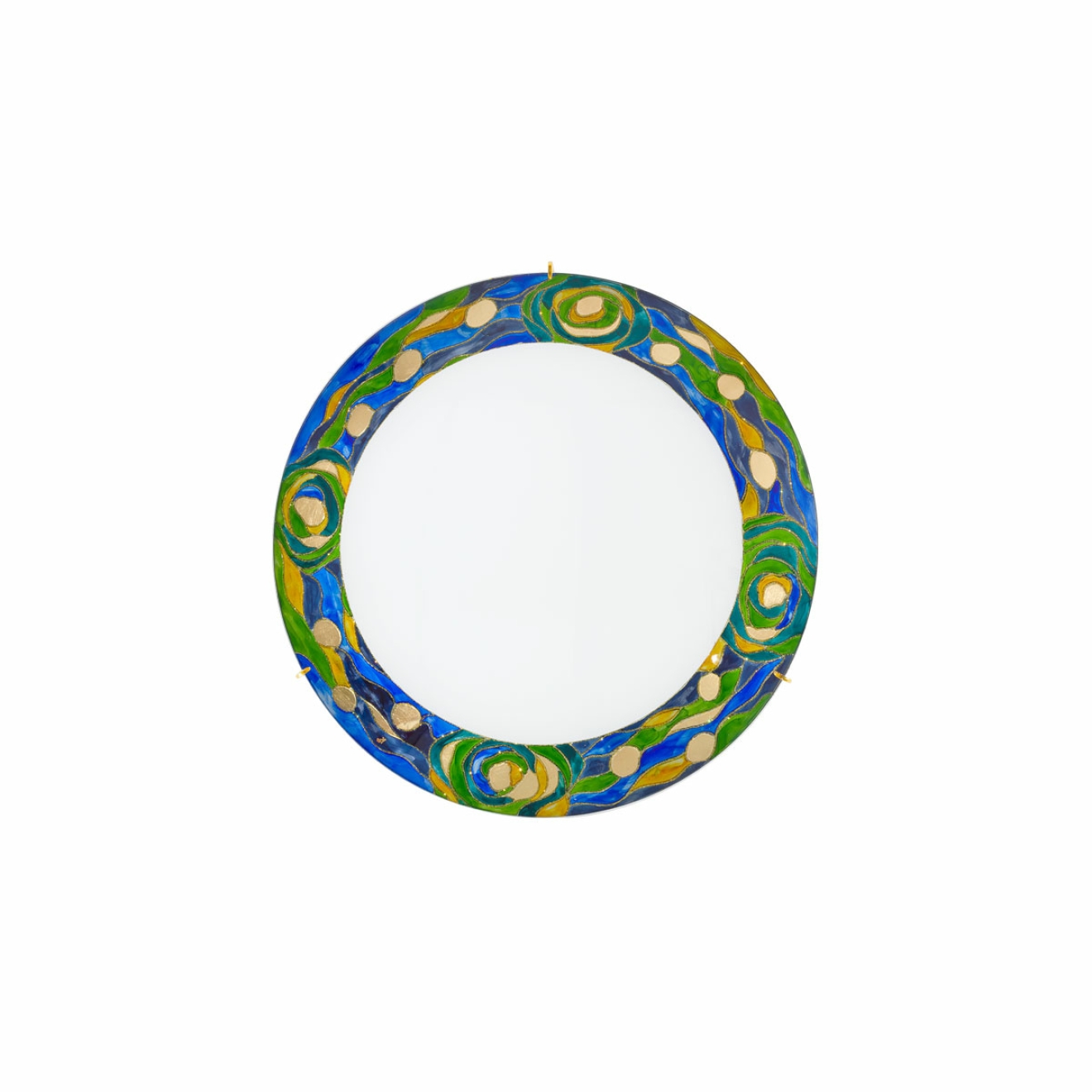 Perfection all round: clear and calm design, fresh and fanciful decors, bright and beautiful light. Meet SERENA, our charming, colourful wall and ceiling lights, available in various hand-painted decors each piece of art is unique. Our hand-painted AQUA BLUE decor shows fanciful motifs of moving water in harmony with finest leaf gold. Each piece of art is unique.