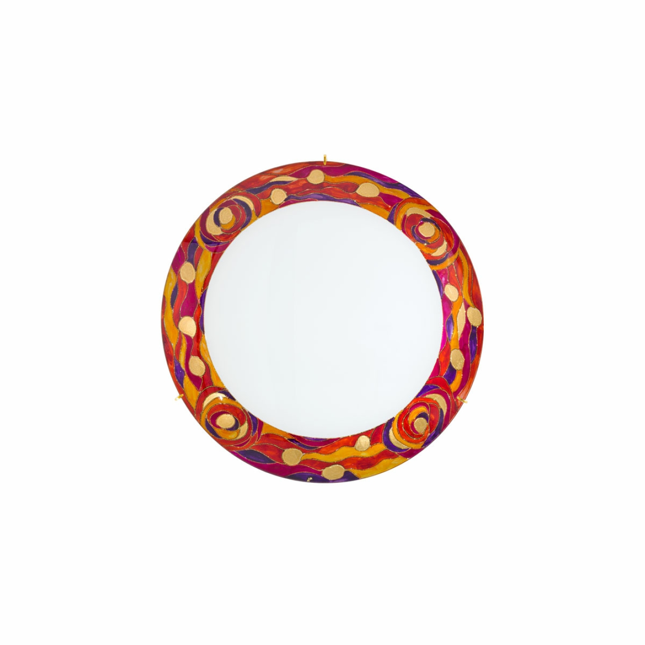 Perfection all round: clear and calm design, fresh and fanciful decors, bright and beautiful light. Meet SERENA, our charming, colourful wall and ceiling lights, available in various hand-painted decors each piece of art is unique. Our hand-painted AQUA RED decor shows a splendid flow of colours and shapes in harmony with finest leaf gold. Each piece is a unique artwork from Vienna.