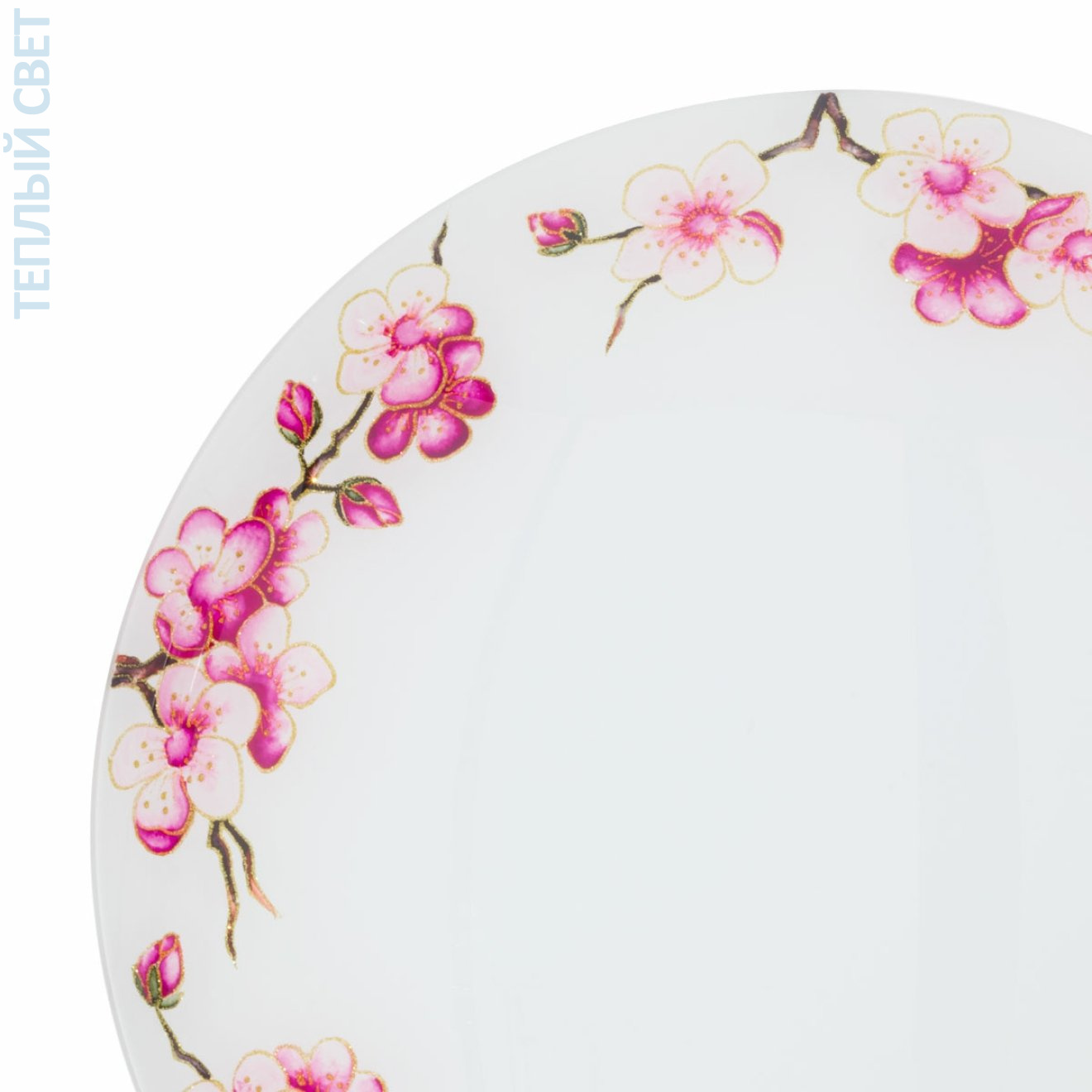 Декор PRIMAVERA ЗОЛОТО: цветущая вишня, расписанная вручную, на изящном сусальном золоте. Совершенство во всем: безупречный и спокойный дизайн, свежий и колоритный декор, яркий и красивый свет. Встречайте SERENA, наши очаровательные, красочные настенные и потолочные светильники, доступные в различных расписанных вручную декорах – каждая модель уникальна.