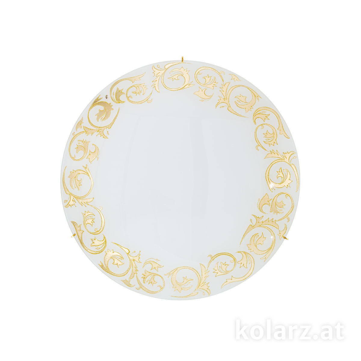 Декор TOSCANA ЗОЛОТО/БЕЛЫЙ. Совершенство во всем: безупречный и спокойный дизайн, свежий и колоритный декор, яркий и красивый свет. Встречайте SERENA, наши очаровательные, красочные настенные и потолочные светильники, доступные в различных расписанных вручную декорах – каждая модель уникальна.