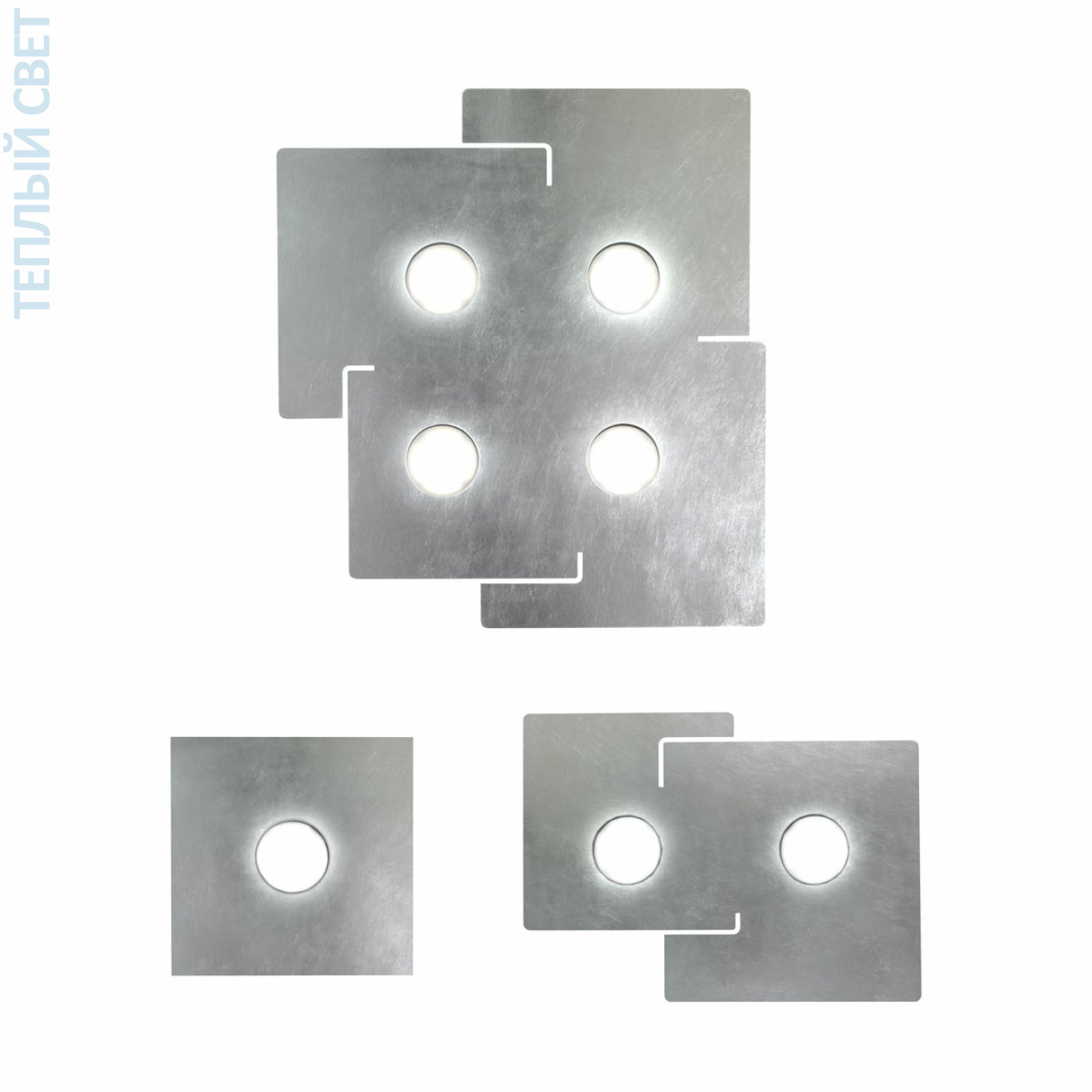 Eye-catching squares, shining brightly at the ceiling of living rooms as well as in office rooms. The precious handcrafted finish shows chrome, white colour or opulent gold, silver or copper leaf. Brushed by hand or decorated by hand in an irresistibly nostalgic vintage look. A breathtaking light creating brilliant ambiance in modern and classic interiors. Decor LEAF SILVER.