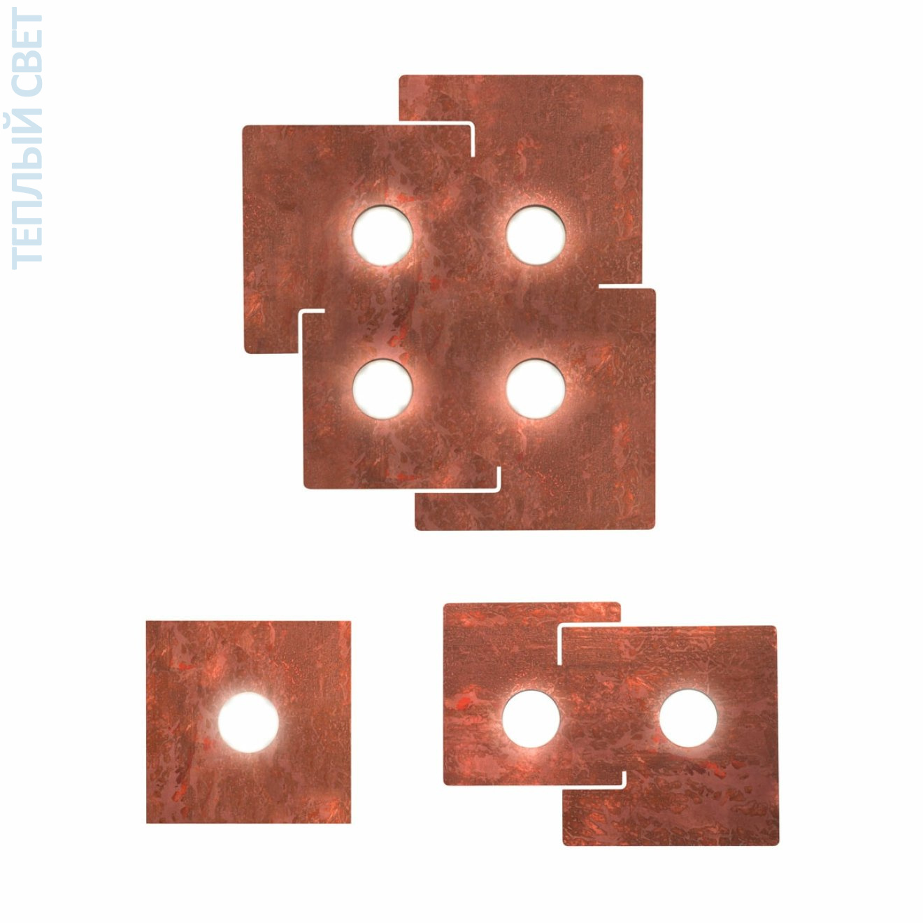 Eye-catching squares, shining brightly at the ceiling of living rooms as well as in office rooms. The precious handcrafted finish shows chrome, white colour or opulent gold, silver or copper leaf. Brushed by hand or decorated by hand in an irresistibly nostalgic vintage look. A breathtaking light creating brilliant ambiance in modern and classic interiors. Decor VINTAGE COPPER.