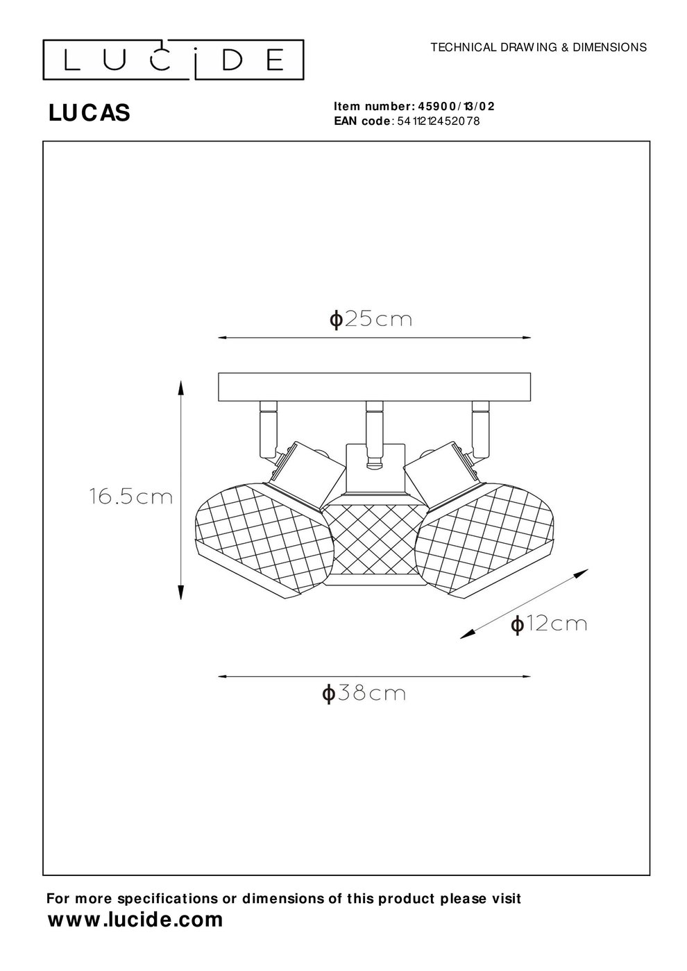 45900/13/02 Lucide Lucas потолочный светильник с тремя сферическими плафонами в решётчатом корпусе