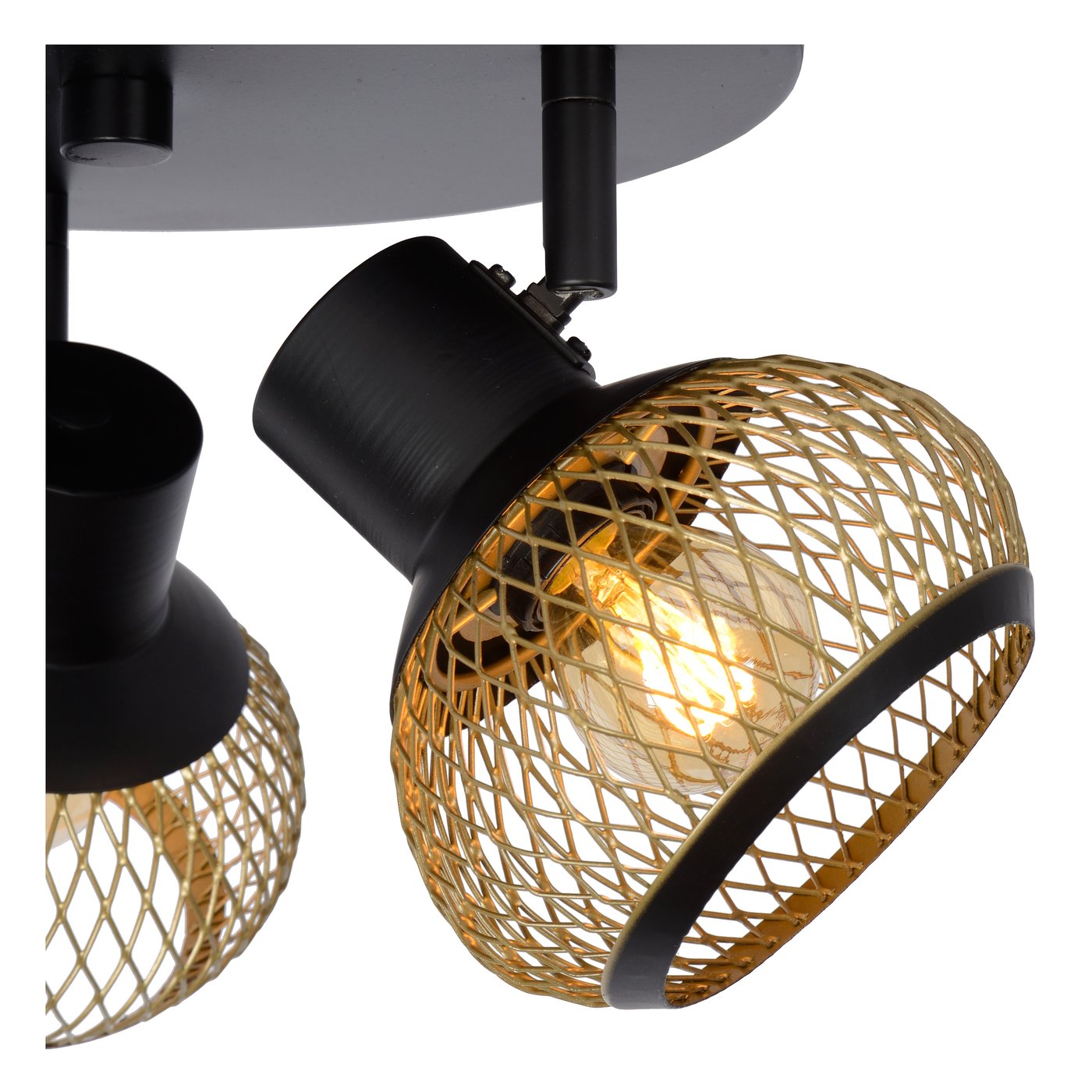 Всё хорошее по три, взгляните хотя бы на потолочный точечный светильник Lucas. Три источника света, обрамлённые золотой решёткой, закреплены на круглой пластине диаметром 25 сантиметров. Всё сделано из высококачественного металла. Lucas — современный светильник с привлекательным и строгим внешним видом, но если подключить его к диммеру, он сразу же приобретёт элегантный вид. Вы можете выбрать, что поместить в точечный светильник, так как источники света вращаются на 360 градусов.