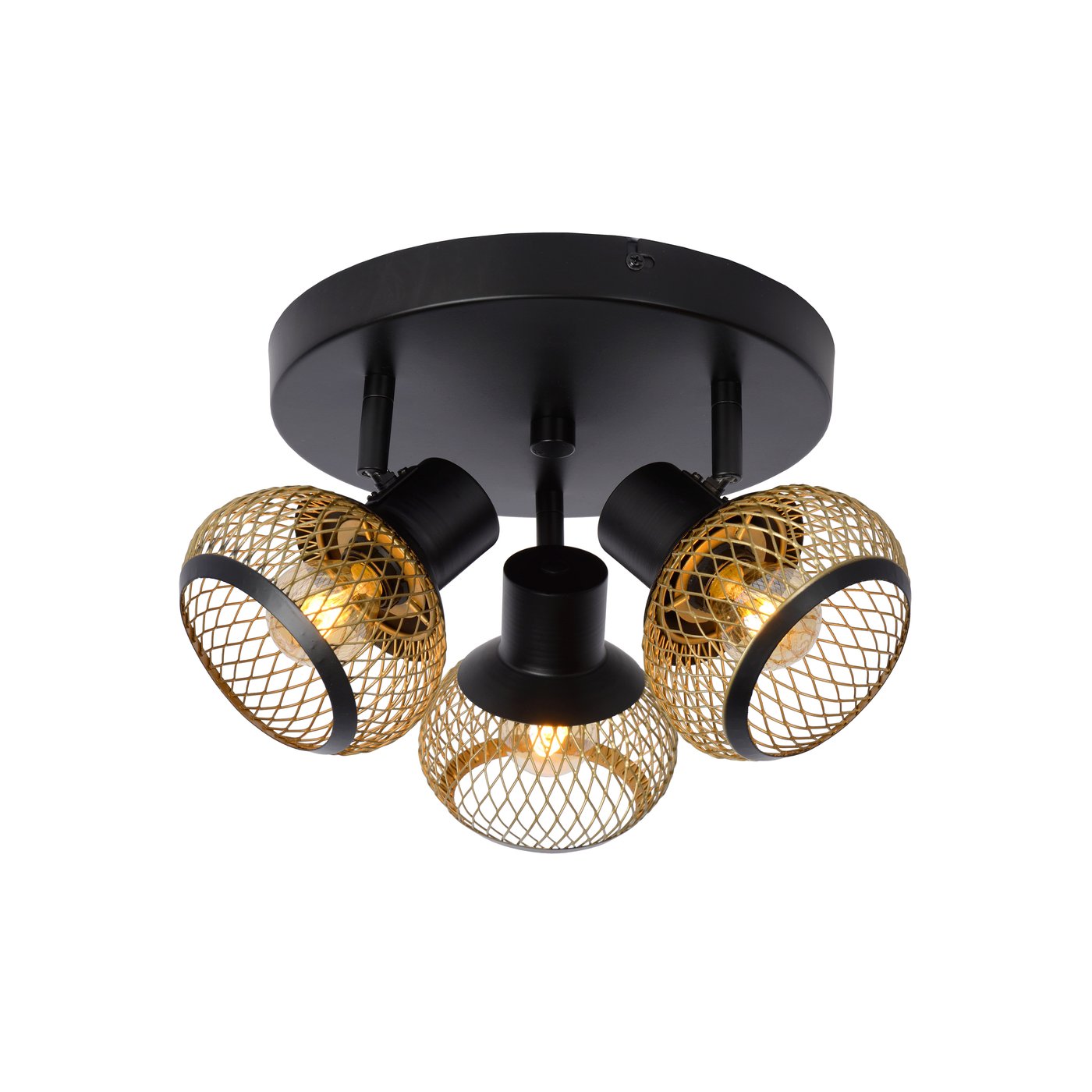 🆔 Потолочный светильник с тремя сферическими плафонами в решётчатом корпусе латунь, матовое золото LUCAS by Lucide