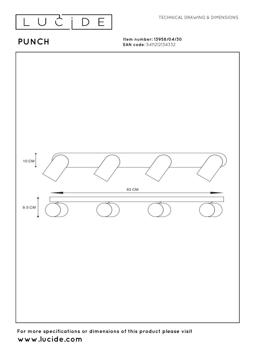 13958/04/30 Lucide Punch потолочный светильник с четырьмя регулируемыми плафонами