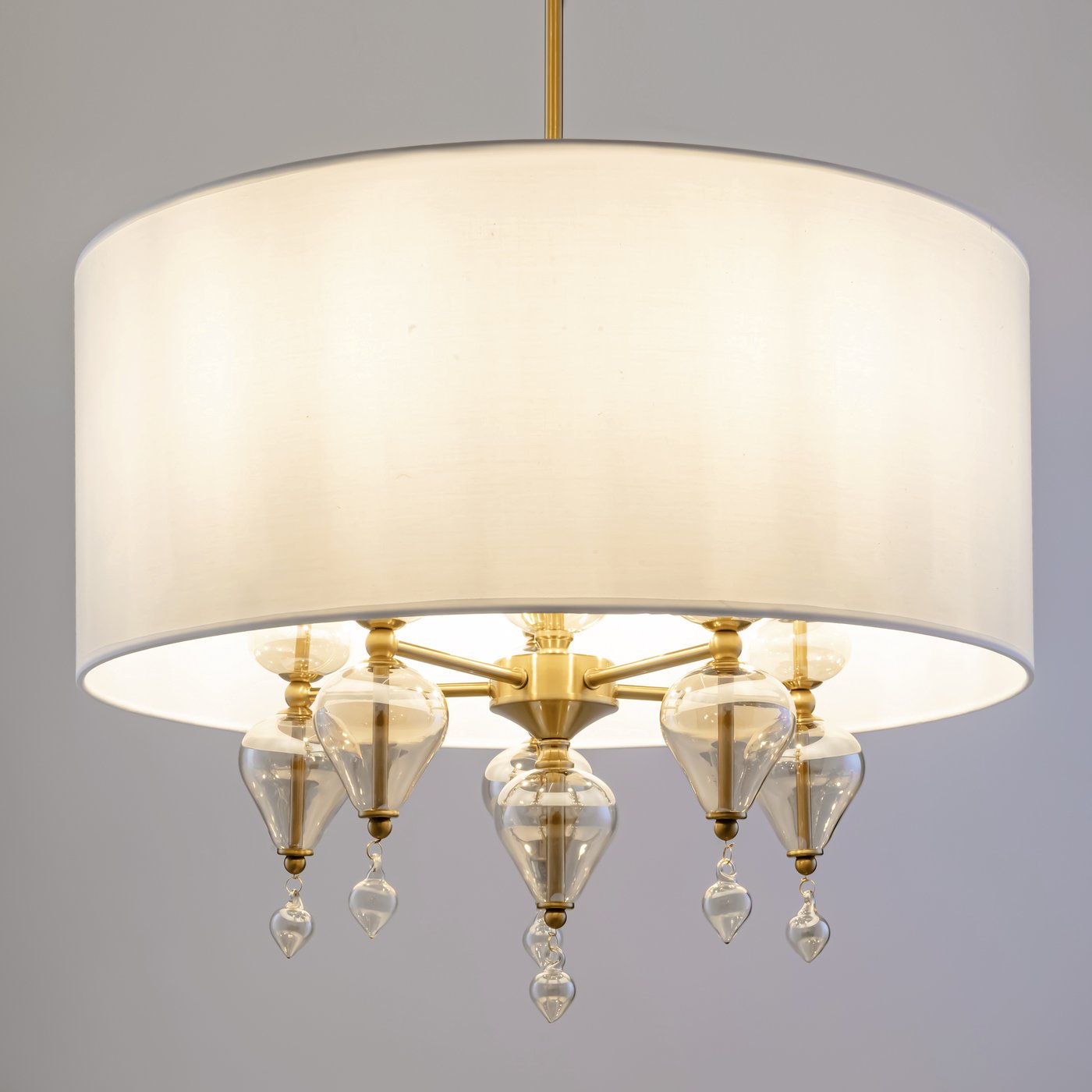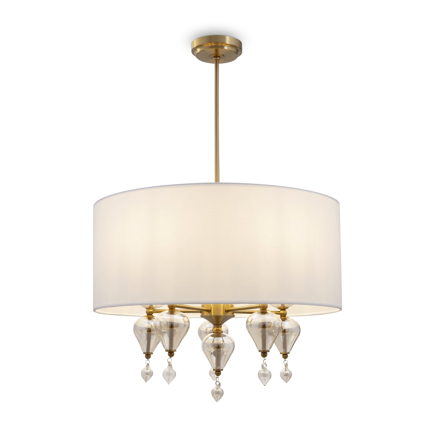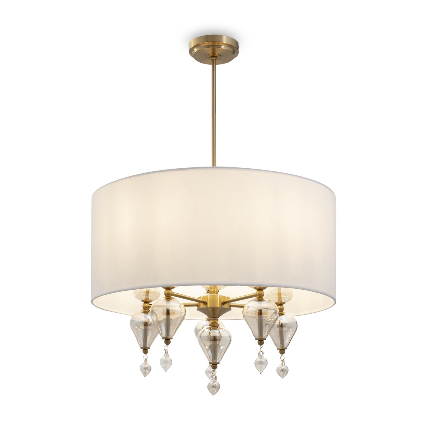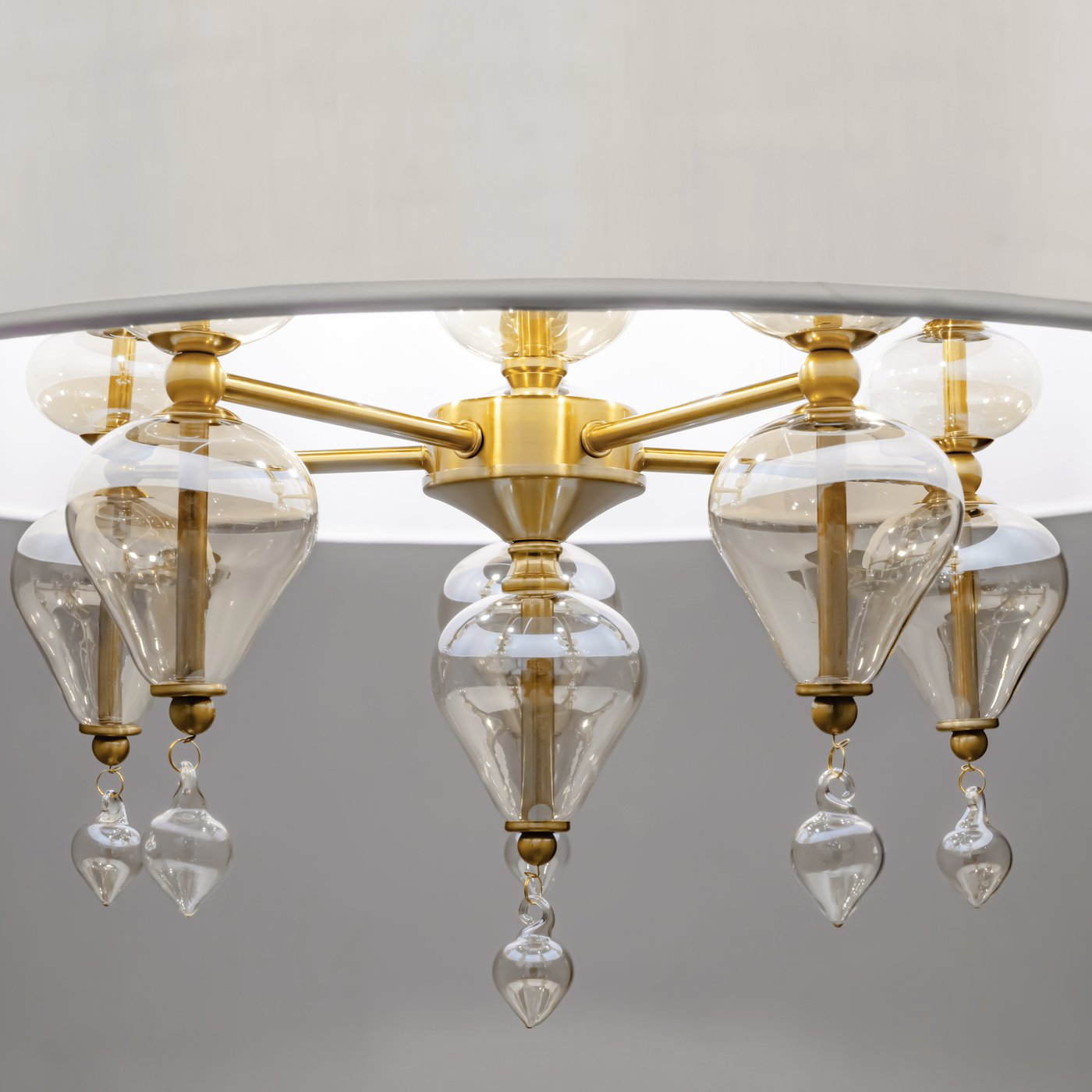 потолочный светильник с тканевым плафоном и хрустальными подвесками на латунной основе