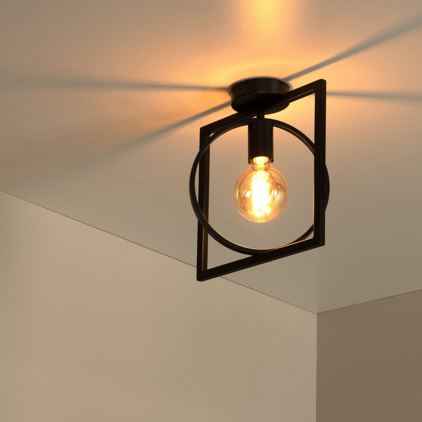 Квадрат или круг? Нет, это потолочный светильник Suus, который вы видите на потолке. В основе этого дизайна лежит сочетание классических и современных элементов. Высококачественный металл преобразует форму круга и квадрата в элегантный потолочный светильник размером 28 x 23,5 x 30 см. Благодаря этому Suus впишется практически в любое пространство, от гостиной и спальни до модного офиса. Подключите потолочный светильник к диммеру, чтобы создать приятную атмосферу в любое время суток.