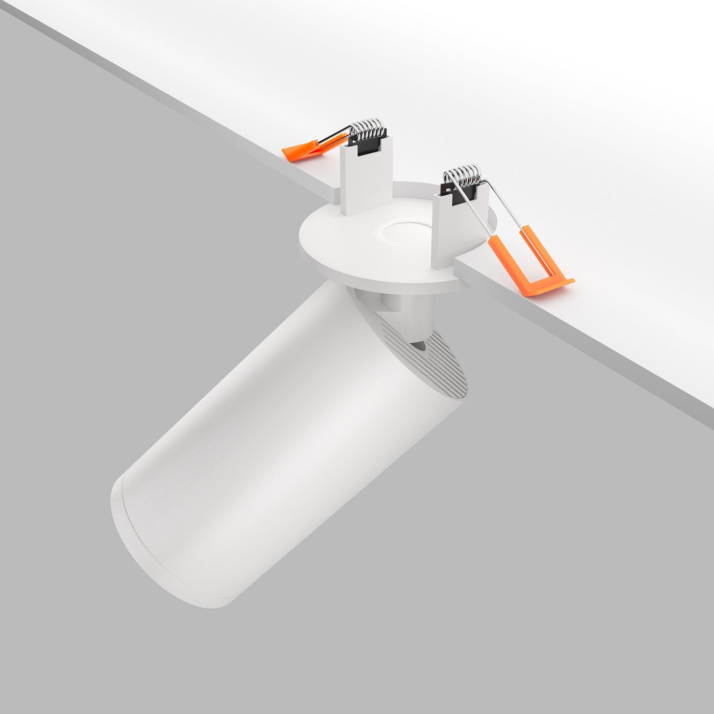 Этот встраиваемый светильник воспринимается как аккуратный световой инструмент с вытянутым цилиндрическим корпусом, слегка вынесенным из плоскости потолка. Его форма подчёркнуто нейтральна и работает на управление светом, а не на декоративный эффект, позволяя источнику оставаться визуально спокойным. В интерьере его используют для акцентной подсветки — например, над прикроватной тумбой или вдоль стены с фактурной отделкой, когда корпус поворачивают и свет точно ложится на выбранный фрагмент. Компактная глубина установки делает прибор удобным для низких потолков, где важно сохранить чистую линию без визуального утяжеления. Источник с цоколем GU10 даёт направленный, собранный поток, подходящий как для локального сценария, так и для работы серией. Такая модель рассчитана на ситуации, где свет настраивают один раз и дальше используют как надёжный ориентир в пространстве.