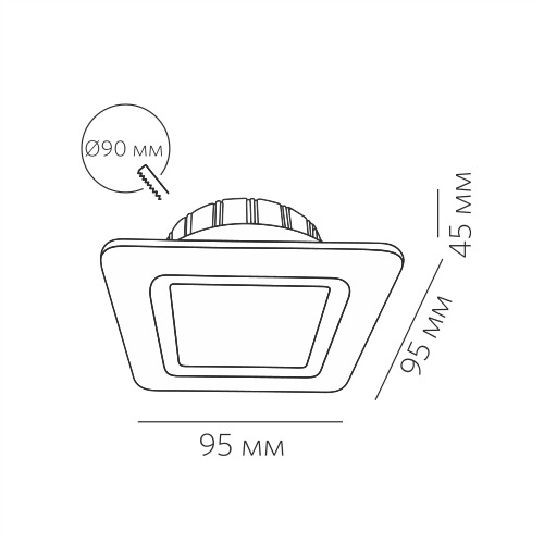 DEKO 6 от Led Technology выглядит как аккуратная световая «вставка» в потолке: квадратная форма со скруглёнными углами читается современно и спокойно, не дробит плоскость и не спорит с архитектурой. Такой светильник уместен там, где нужен чистый, ровный верхний свет без декоративности — в кухне, коридоре, гардеробной, санузле или в рабочей зоне, где важно сохранить визуальную тишину. Компактный размер 95×95 мм позволяет собирать аккуратную сетку из нескольких точек, а небольшая глубина встройки делает модель удобной для потолков с ограниченным пространством. Встроенный LED-модуль мощностью 6 Вт даёт 600 лм при 3000K, поэтому свет получается тёплым и достаточно плотным для повседневных сценариев. Широкий угол 120° помогает равномерно распределить поток без резких пятен, особенно если светильники расставлены с правильным шагом. Степень защиты IP40 расширяет возможности применения в помещениях, где важна защита от пыли и случайных брызг, а вынесенный драйвер уже входит в комплект и упрощает монтаж.