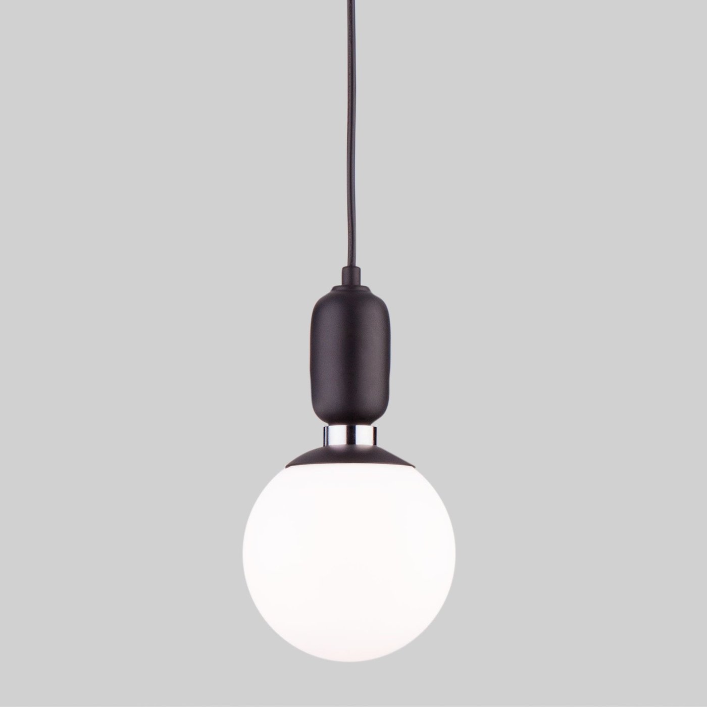 Подвесной светильник со стеклянным плафоном 50151/1 в черном цвете предназначен для создания дополнительного освещения и акцентной подсветки в современных интерьерах. Светильник со сменными лампами E27 создаст качественное освещение на площади 4 м кв. и подсветит рабочие зоны на кухне, в зале и в других местах.