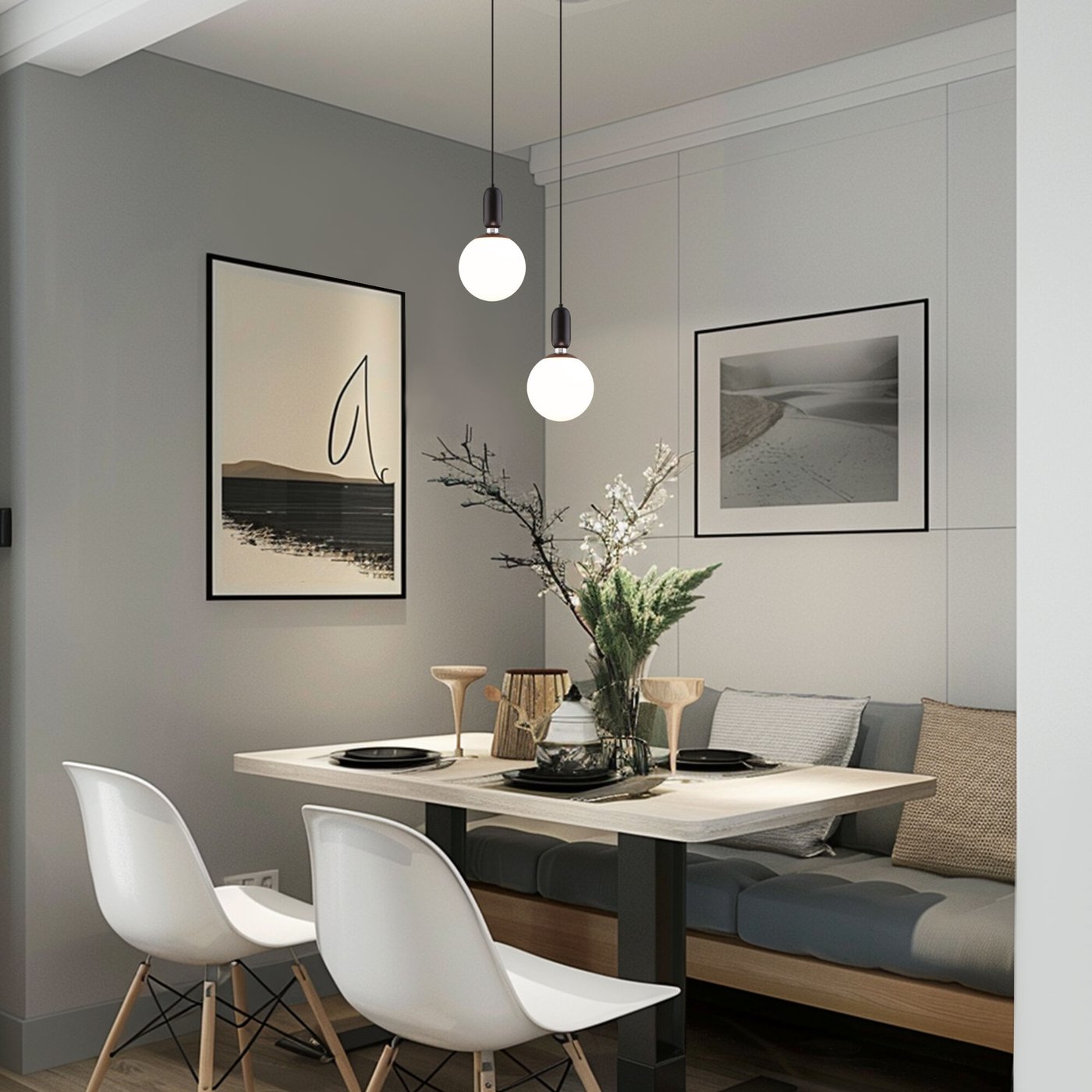 Светильник со стеклянным плафоном в белом цвете оснащен системой регулировки высоты подвеса, позволяющей размещать изделие на разных уровнях, уменьшая или увеличивая угол рассеивания светового потока. Данный светильник легко устанавливается на потолке при помощи монтажной планки.