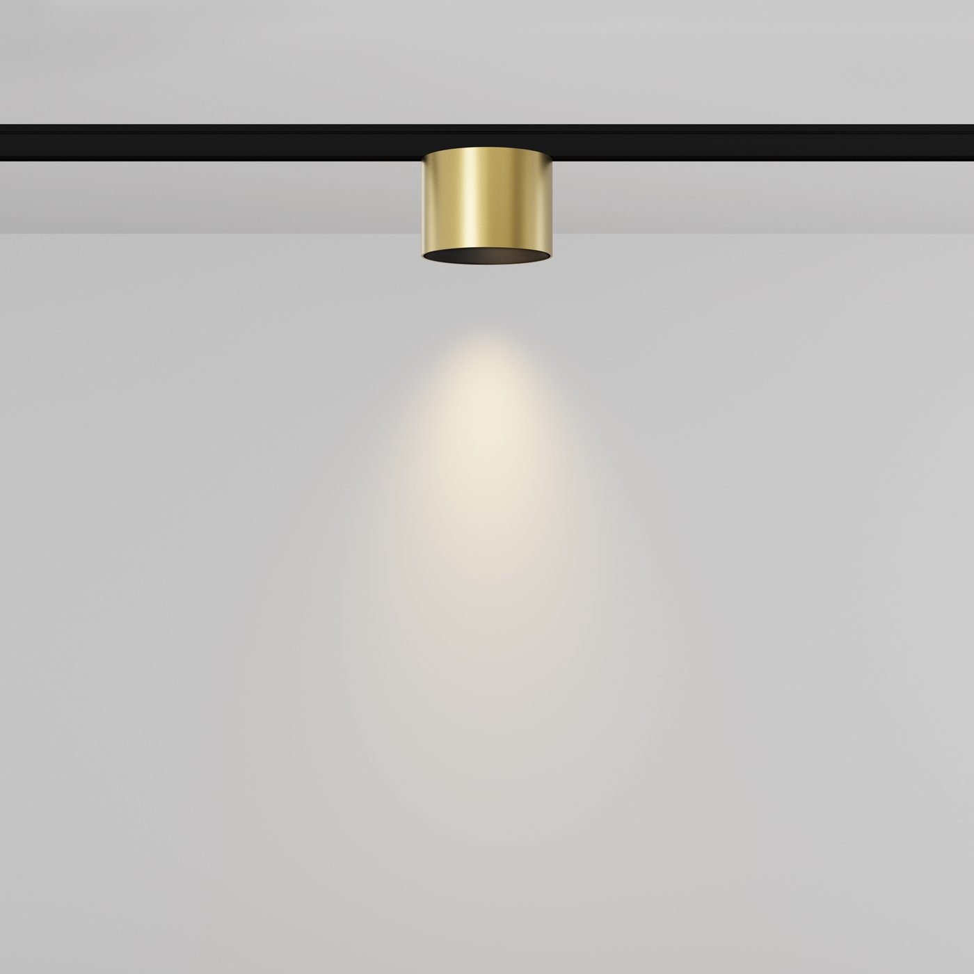 трековый прожектор латуневого цвета с матовым цилиндрическим корпусом