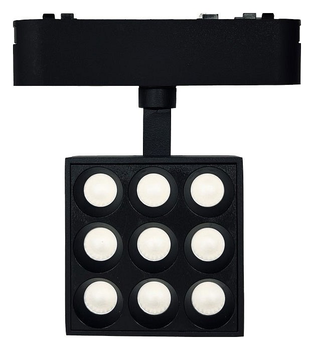 магнитный трековый модульный светильник чёрного цвета с девятью направленными источниками света 40V