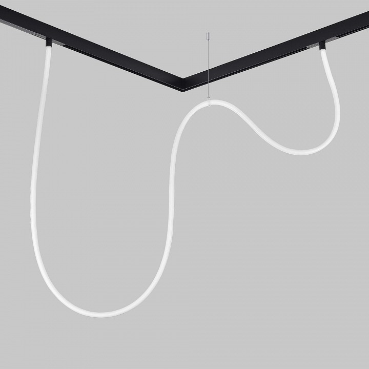 Линейный подвес для магнитного трека ST-Luce Skyline 48 выполнен как гибкая световая линия длиной 3 метра, свободно формирующая мягкие изгибы под потолком. Силиконовый матовый рассеиватель скрывает точки светодиодов и даёт равномерное свечение по всей длине, поэтому при взгляде снизу свет воспринимается сплошной полосой без резких перепадов яркости. Модель подходит для основного света в гостиной или кабинете площадью до 18 м²: поток 3500 лм при мощности 36 Вт создаёт достаточную освещённость для повседневных задач, а тёплая температура 3000 К поддерживает комфортную атмосферу вечером. Когда человек перемещается по комнате, распределение света остаётся стабильным за счёт непрерывной геометрии излучения и равномерной высоты подвеса. Питание 48 В в магнитной системе упрощает подключение и позволяет интегрировать светильник в общую трековую схему без видимых проводов, а светоотдача 97 лм/Вт обеспечивает эффективную работу при умеренном энергопотреблении.