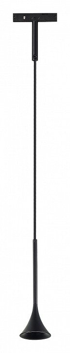 подвесной светильник с белым сферическим плафоном на длинном черном штоке для магнитного трека 48V