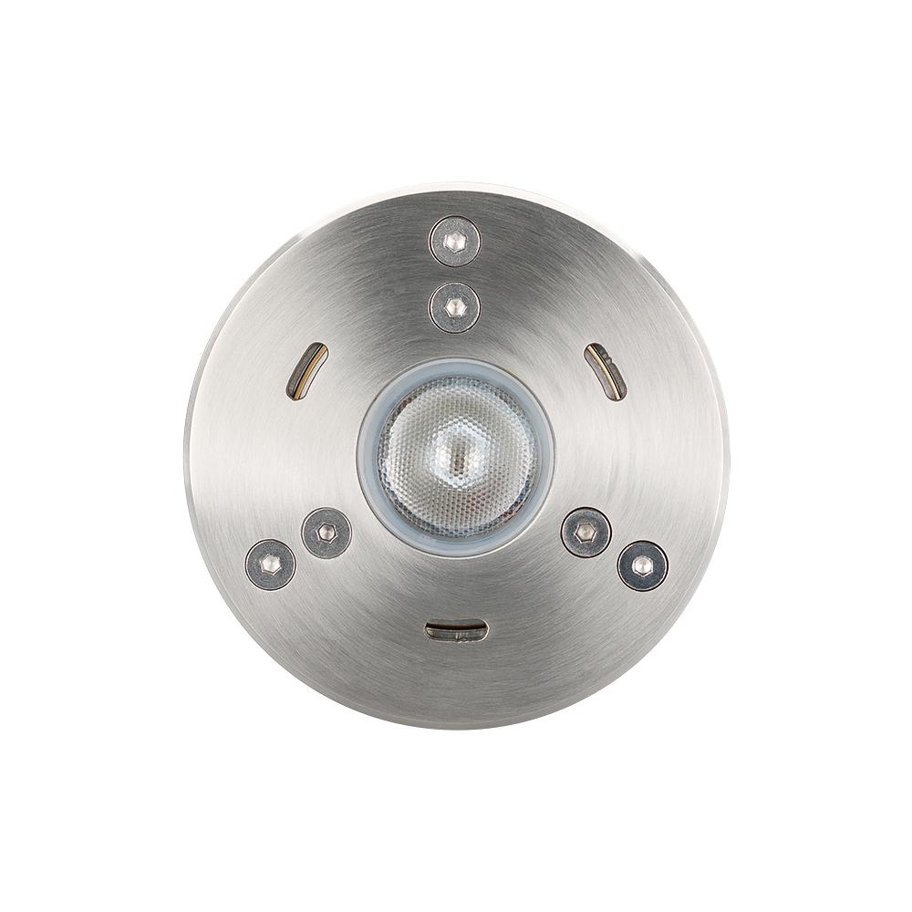 Подводный светильник KT-AQUA-COLOR-R85-9W RGB от Arlight из коллекции Aqua предназначен для создания динамичного декоративного освещения в водоемах, фонтана, бассейнах и других наружных помещениях. Светильник с мощностью 9 Вт и углом излучения 25 градусов создает точечное освещение с возможностью изменения цветов благодаря RGB-лампе. Корпус выполнен из нержавеющей стали с высокой степенью защиты IP68, что позволяет работать при полном погружении в воду. Он оснащен оптическим стеклом толщиной 10 мм, что обеспечивает долгосрочную эксплуатацию. Управление цветом и яркостью света осуществляется с помощью внешнего RGB-ШИМ-контроллера. Диапазон рабочих температур от -40 до +60°C, а для монтажа предусмотрено бетонное основание.
