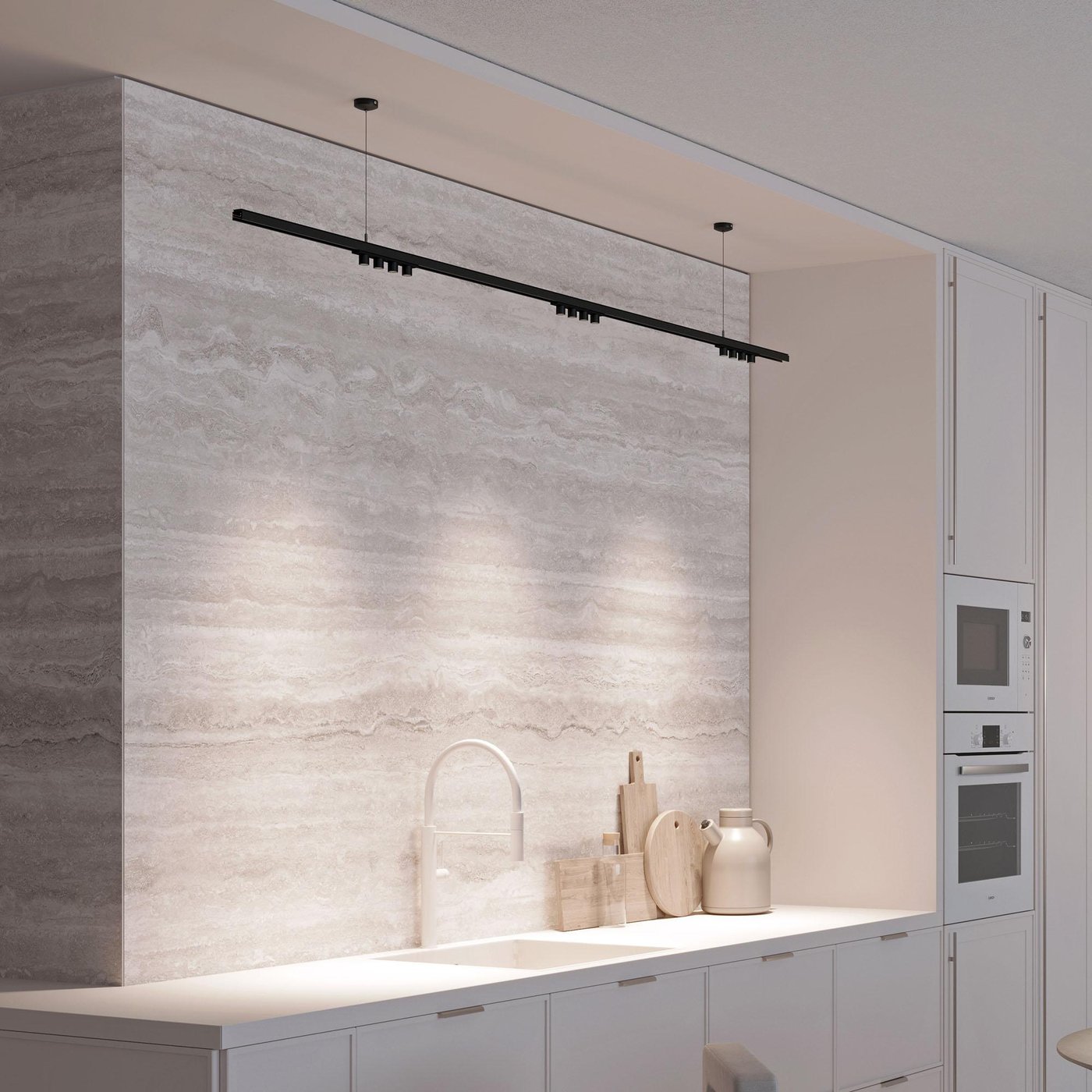 В системе магнитных треков Arlight серии Mag-orient используется линейный светильник с четырьмя направленными модулями ORIENT-KRATER, предназначенный для акцентного освещения внутри помещения. Металлический корпус длиной 195 мм устанавливается на магнитный шинопровод шириной 26 мм и фиксируется магнитным и механическим креплением, поэтому модуль можно быстро переставить по треку при изменении световой схемы. Четыре цилиндрических источника света формируют направленные пучки вниз: при размещении над стеной или витриной каждый модуль выделяет отдельный объект или участок поверхности. Угол излучения 25° создаёт узкое световое пятно, позволяя точно акцентировать предметы или фактуру стены без сильной засветки соседних зон. Световой поток 750 лм при цветовой температуре 4000 К даёт нейтральный рабочий свет, подходящий для кабинетов, офисов и функциональных зон в жилых интерьерах. Питание от системы 48 В используется в магнитных трековых системах, где важно безопасное низковольтное подключение и гибкая конфигурация освещения.