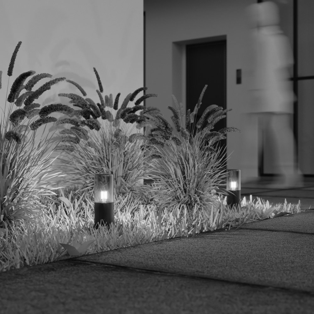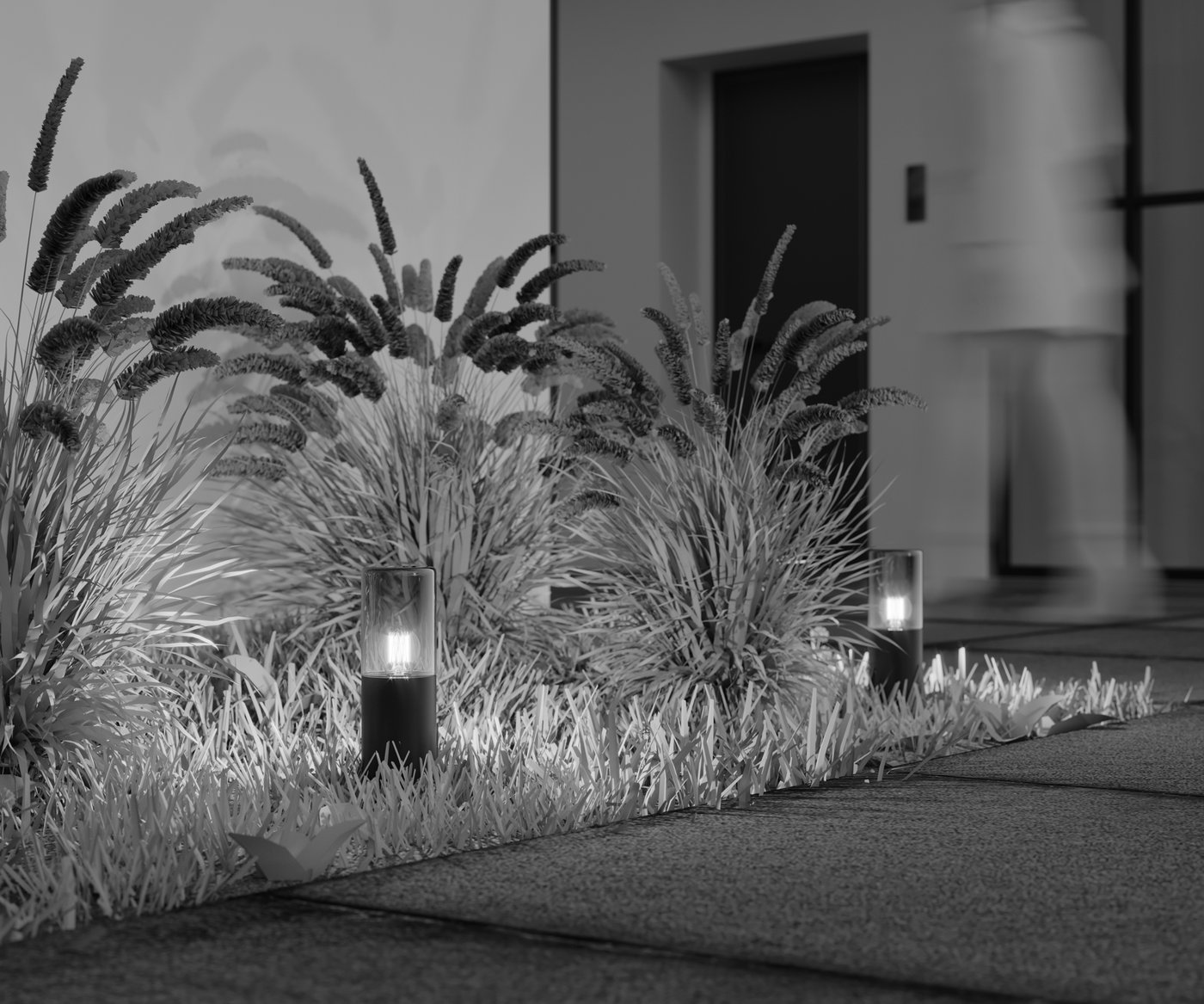 Ландшафтный светильник Amas воспринимается как сдержанный интерьерный объект для улицы, где строгий цилиндрический корпус служит спокойным фоном для света, а не самостоятельной формой. Прозрачный верхний сегмент оставляет источник видимым и создаёт ощущение глубины, без декоративной игры и лишних акцентов. В реальном использовании он раскрывается вечером вдоль дорожки или у входной группы, когда при включении свет поднимается изнутри корпуса и мягко обозначает границу пространства, не ослепляя проходящих. Такой сценарий удобен для навигации и ориентации, а не для яркого освещения территории. Свет распределяется равномерно вокруг, формируя читаемый световой столб на уровне человеческого роста. Конструкция рассчитана на постоянную уличную работу, где важны устойчивость, понятная логика света и аккуратное присутствие в среде, а не эффектность.