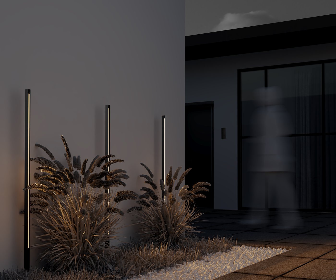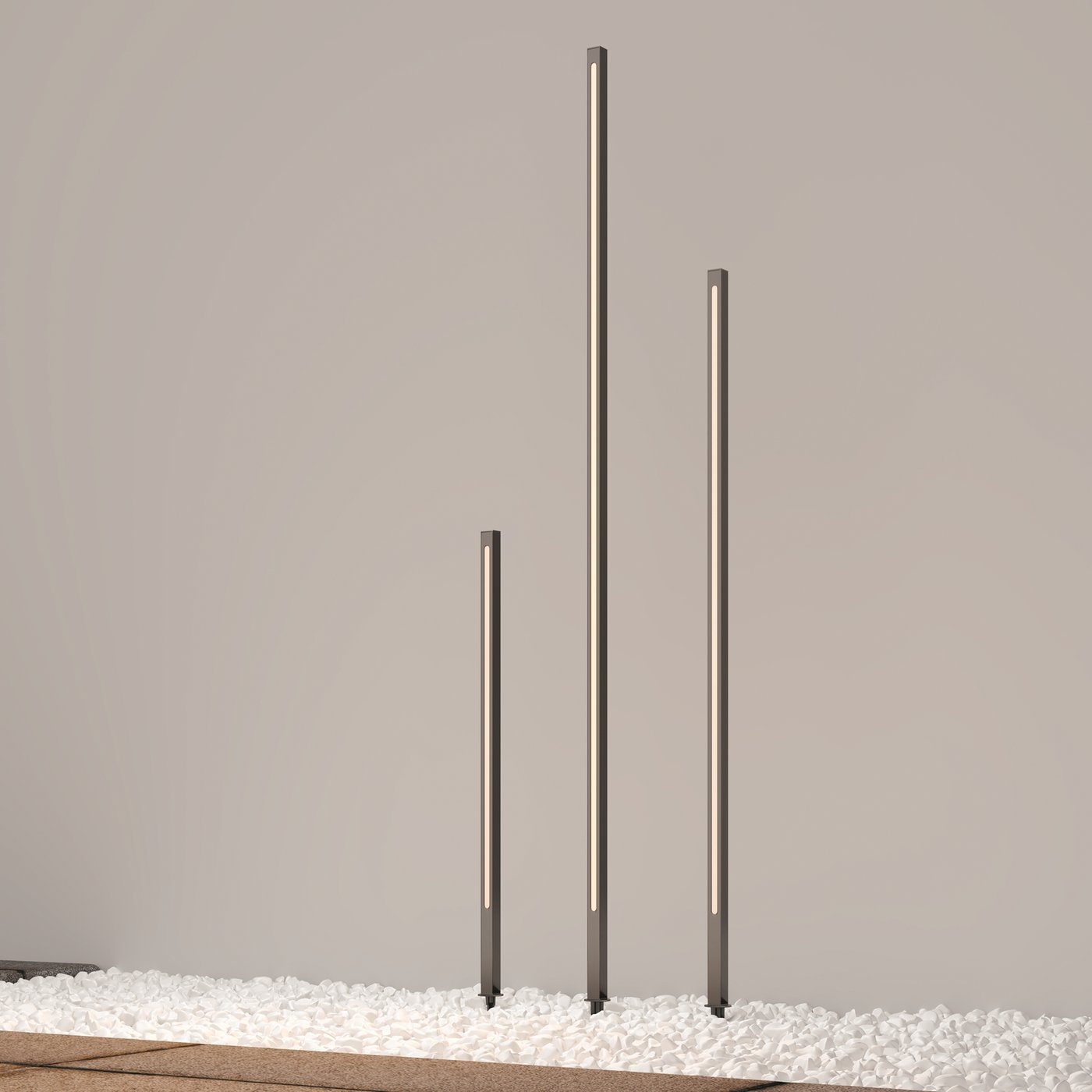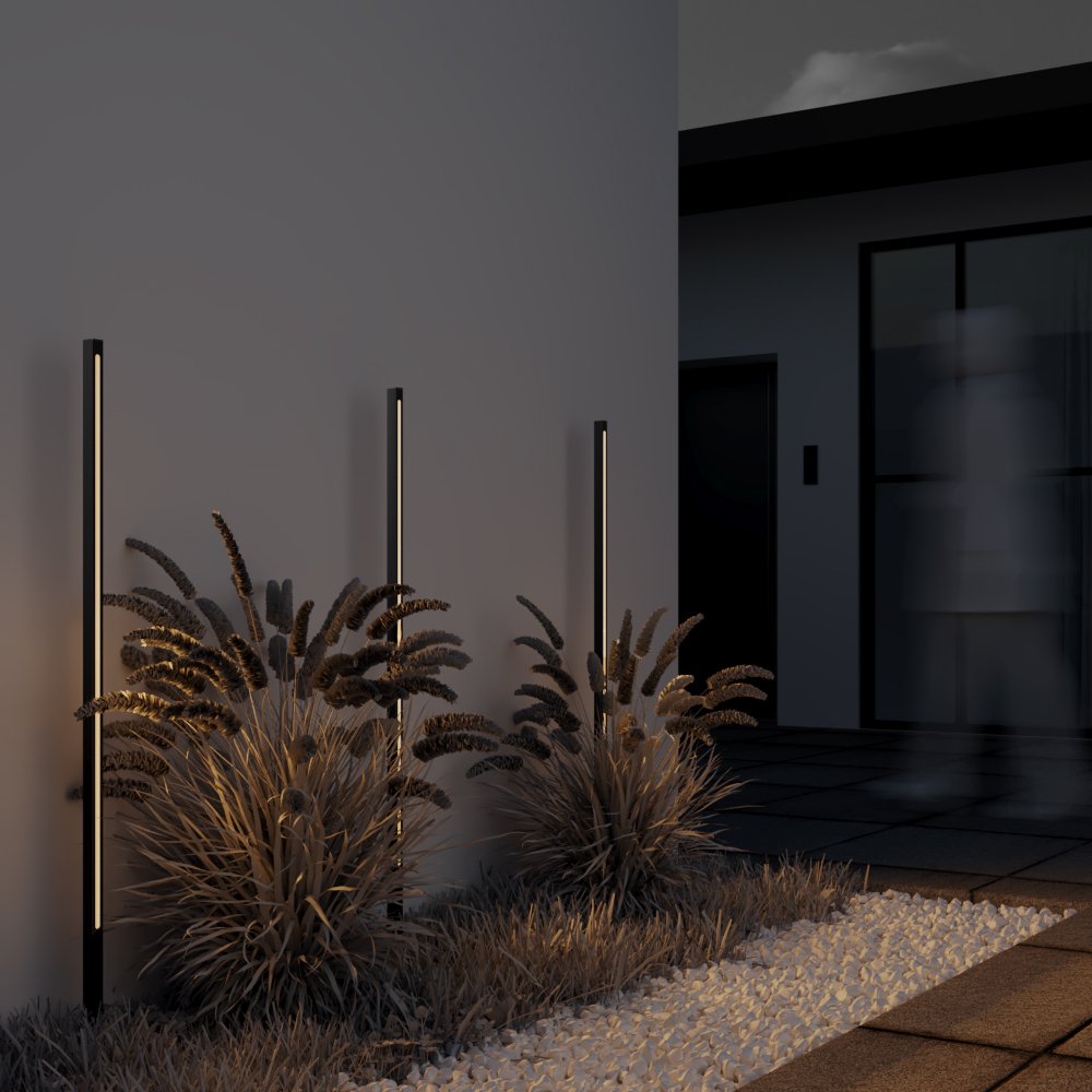 Ландшафтный светильник Pole выглядит как строгий вертикальный штрих, аккуратно вписанный в пространство сада или участка, где свет работает не на декоративность, а на структуру и ориентацию. Вытянутый алюминиевый корпус с графитовой поверхностью подчёркивает архитектурный характер модели и позволяет ей оставаться нейтральным элементом днём, проявляясь только с наступлением темноты. Такой светильник органично смотрится вдоль дорожек, у входных групп, на террасах или в зонах с регулярной планировкой, где важно обозначить направление движения и границы пространства. Односторонняя полоса света формирует мягкое боковое освещение, не ослепляя и не нарушая восприятие ландшафта. Встроенный светодиод даёт тёплый свет около 3000 К с потоком порядка 1000 люмен, достаточным для уверенного ориентирования в тёмное время суток. Мощность 18 Вт сочетается с широким углом рассеивания и высокой степенью защиты IP65, что позволяет использовать светильник на открытом воздухе круглый год без потери стабильности и визуального качества.