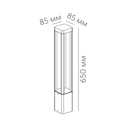 Ландшафтный светильник SOLAR L650 9.27 DG из коллекции Solar выполнен в современном минималистичном стиле и предназначен для освещения дорожек, террас и входных зон. Корпус из алюминия имеет строгую прямоугольную форму и дополнен вертикальными открытыми элементами, создающими выразительный архитектурный силуэт. Модель представлена в тёмно-сером цвете и органично вписывается в современную садовую и городскую среду. Светильник оснащён светодиодным источником света с цветовой температурой 2700 K и световым потоком 270 лм, формируя мягкое тёплое освещение. Высокий индекс цветопередачи Ra 90 обеспечивает естественную передачу оттенков материалов и окружающего пространства. Угол рассеивания 92° создаёт направленный световой поток, подходящий для ориентирующего и акцентного освещения. Модель рассчитана на питание 220 В, максимальная мощность составляет 8,5 Вт, степень защиты — IP65. Драйвер входит в комплект и расположен внутри корпуса; габариты светильника — 85 × 85 × 650 мм.