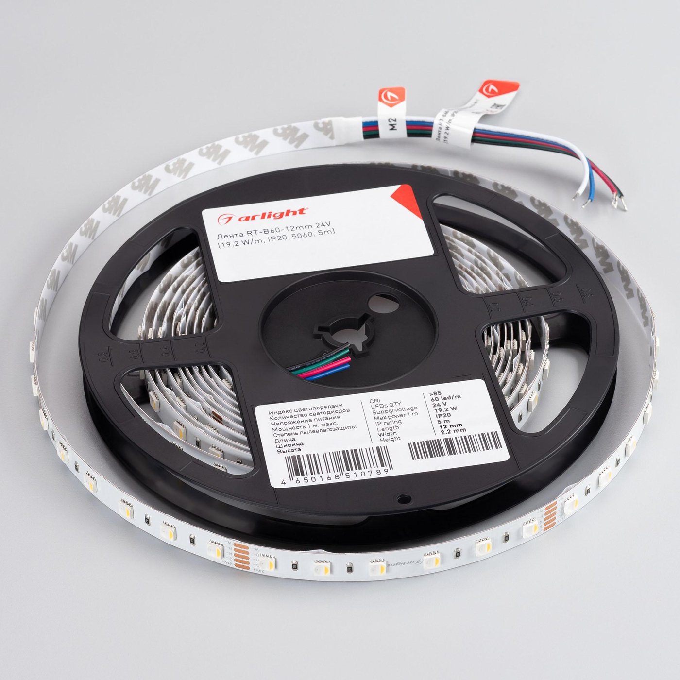 Мультицветная светодиодная лента RT серии B60 мощностью 19.2 Вт/м. Светодиоды SMD 5060, 60 шт/м, четыре цвета свечения в одном корпусе: RGB, белый 6000K с индексом цветопередачи CRI>85. Напряжение питания 24 В. Предназначена для декоративной подсветки ниш, элементов интерьера. Применяется для создания световых линий с изменяемым цветом свечения. Четырехканальная лента с пятью проводами для подключения, технология моночип 4-in-1 дает идеальное смешение цветов. Равнозначные мощности на всех четырех каналах значительно упрощает работу с любым RGBW-контроллером. Минимальный отрезок 100 мм (6 светодиодов).