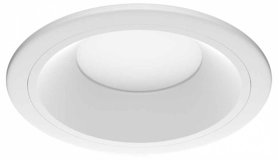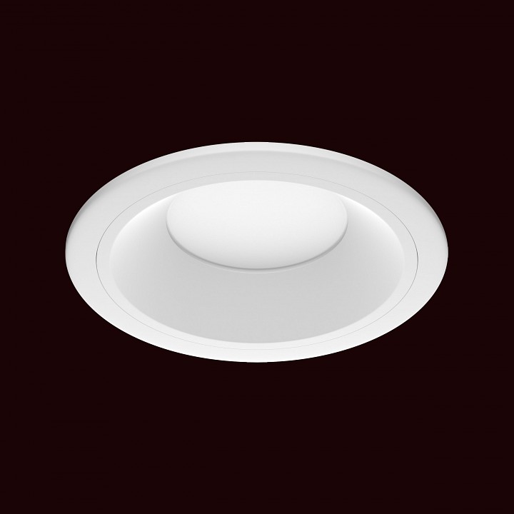 Встраиваемый точечный светильник круглой формы для потолочного монтажа в жилых и рабочих помещениях. Корпус диаметром 106 мм и высотой 4 мм устанавливается с помощью прижимных скоб, что позволяет утопить его в поверхность и оставить видимой только лицевую часть. Внутри размещён встроенный светодиодный источник мощностью 9 Вт с цветовой температурой 3000K и световым потоком 378 лм, рассчитанный на питание от сети 220 В. Матовый белый металлический корпус формирует направленную световую зону. Степень защиты IP20 указывает на использование внутри помещений, ресурс работы заявлен до 20 тысяч часов.